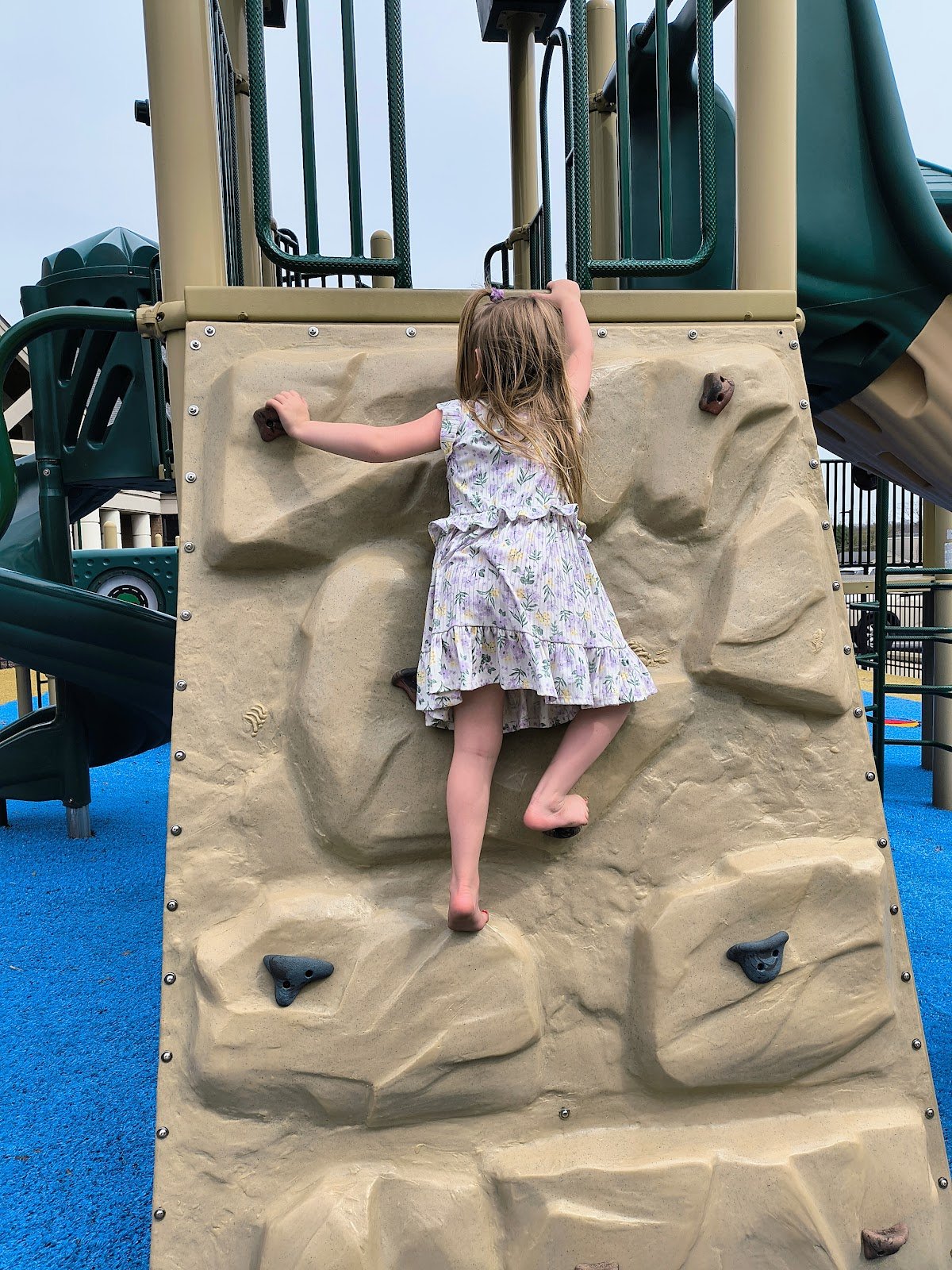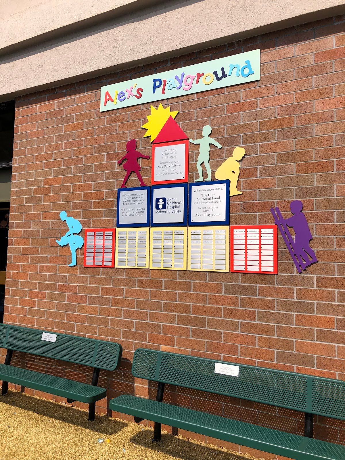 This is a really nice playground located at the hospital , my grandchildren and I were able to use the area while we waited for my granddaughter to be out of surgery. It has nice safety features such as soft padding and a safety gate.