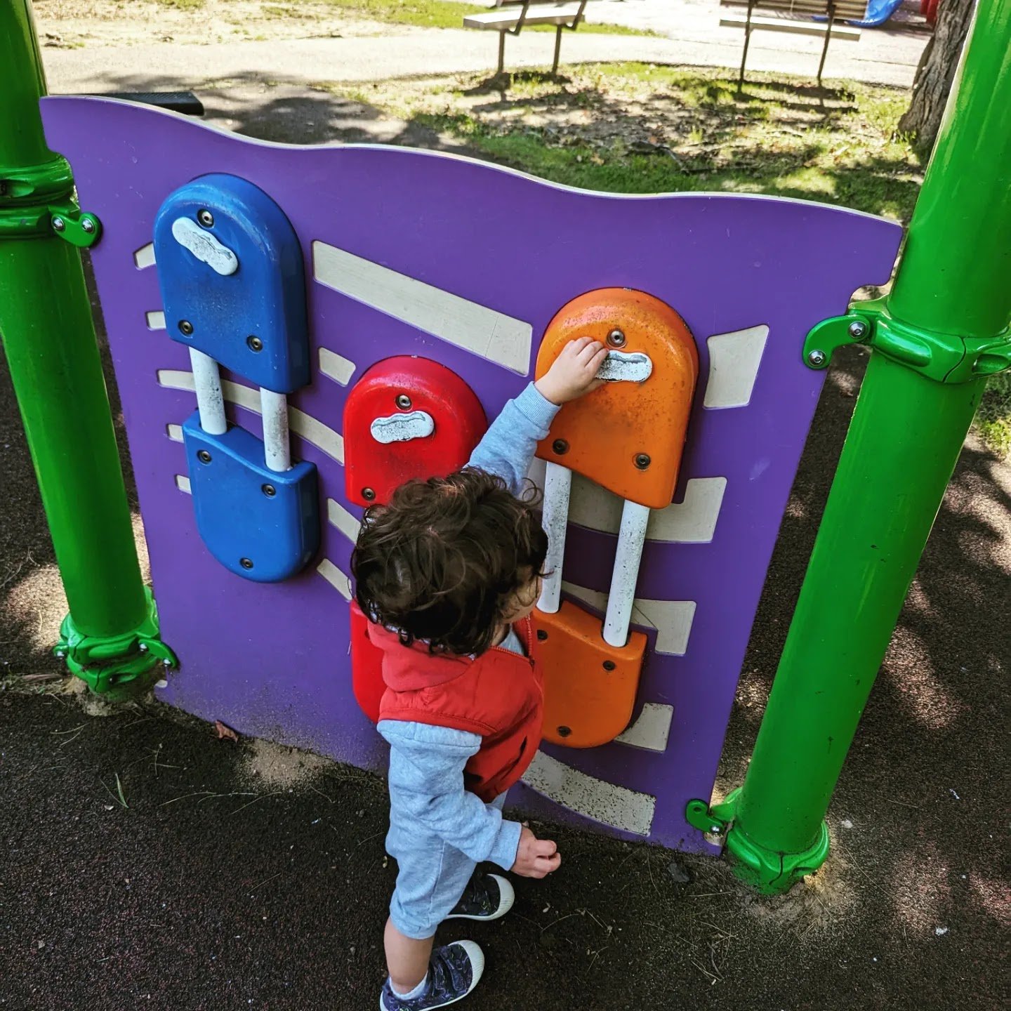 Perfect playground for little kids. Shady spots and places to take a break. Plenty of parking on a Thursday morning.
