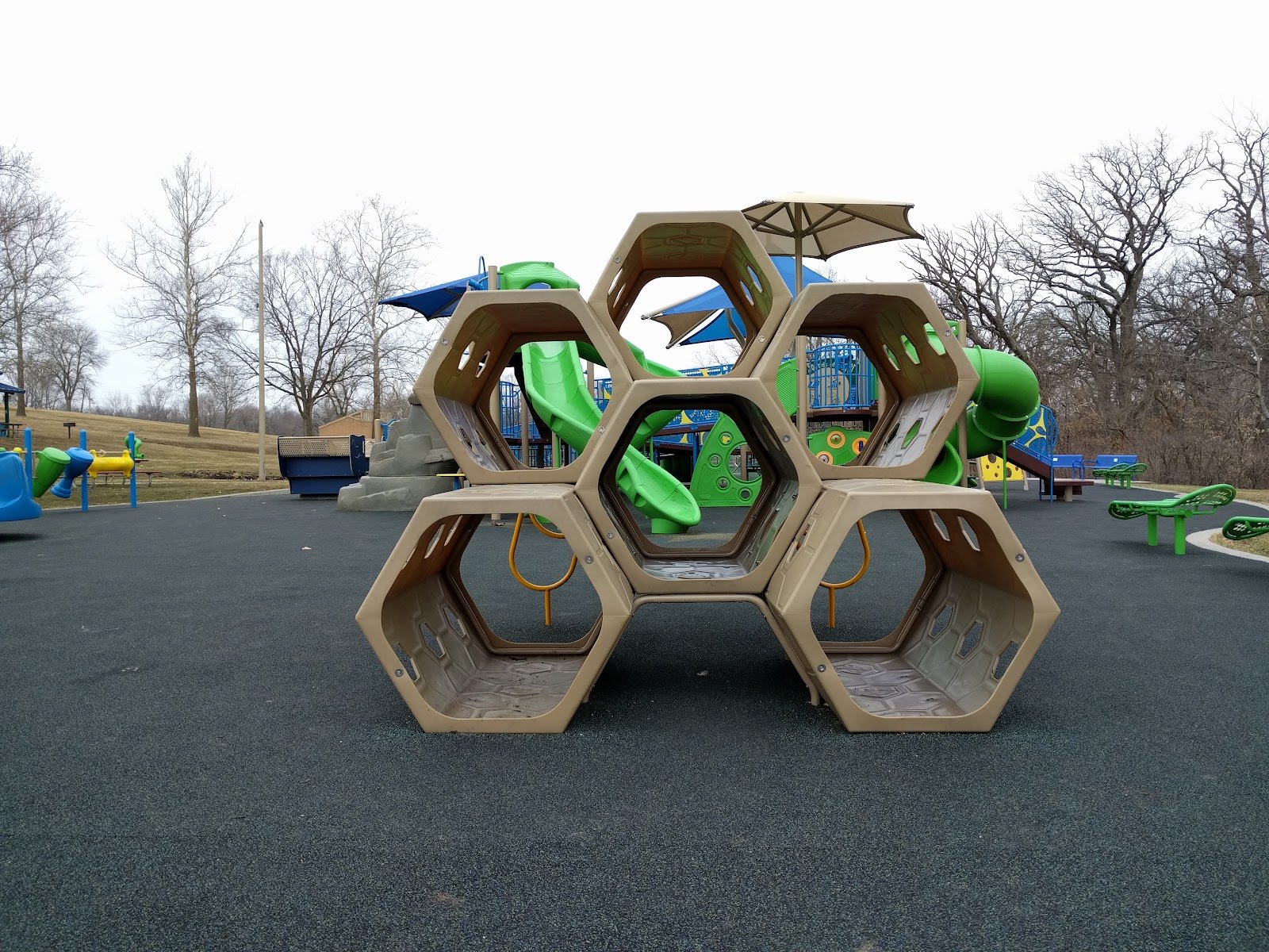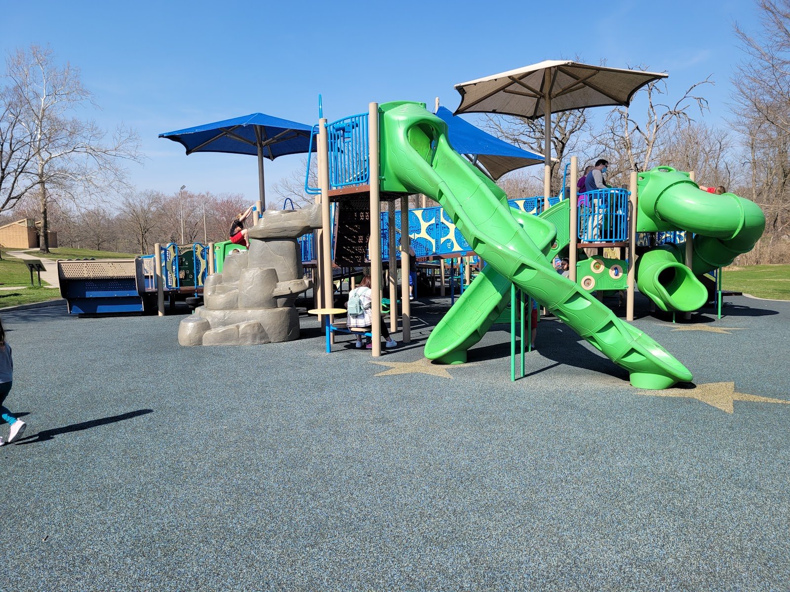 This park amazed me! It is so lovely. My children ages 3 and 4 absolutely LOVED it. This was one of those parks I had to bribe them to leave. There is parking and restrooms. They also have beautiful walking trails and after playing on the park we took a nice walk just the 3 of us and our pup love. My children made it through the entire trail and loved it. I left my phone and was a little nervous but felt safe enough to walk through the trail with kids. Not being from the area makes me nervous to go on hikes without my husband but here we felt safe and the beautiful hand built bridges over little water ways and an easier trail to take for the kids and I. Will definitely go back!