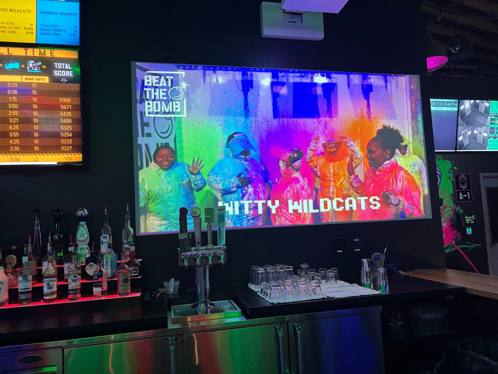Such an awesome place to play interactive games with friends! We went with a group of 10 friends and had a lot of fun!!! Getting splashed with colors was the best end of our game experience. The price of your ticket includes chips, dips and a cocktail of your choice. The staff was helpful and amazing!! Highly recommended!!
