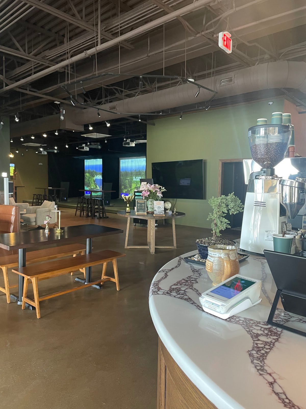 This is the best matcha I’ve ever tasted! I just got a hot matcha latte! The atmosphere was calming with the dim lights and colors! We didn’t get to try the golf but it looked fun! It was a virtual screen where you can play a full course! On Wednesday’s they have a ladies night where you can play a full course or mini golf, drink champagne, and enjoy charcuterie boards (meats and cheeses). Will definitely come back for the ladies night!