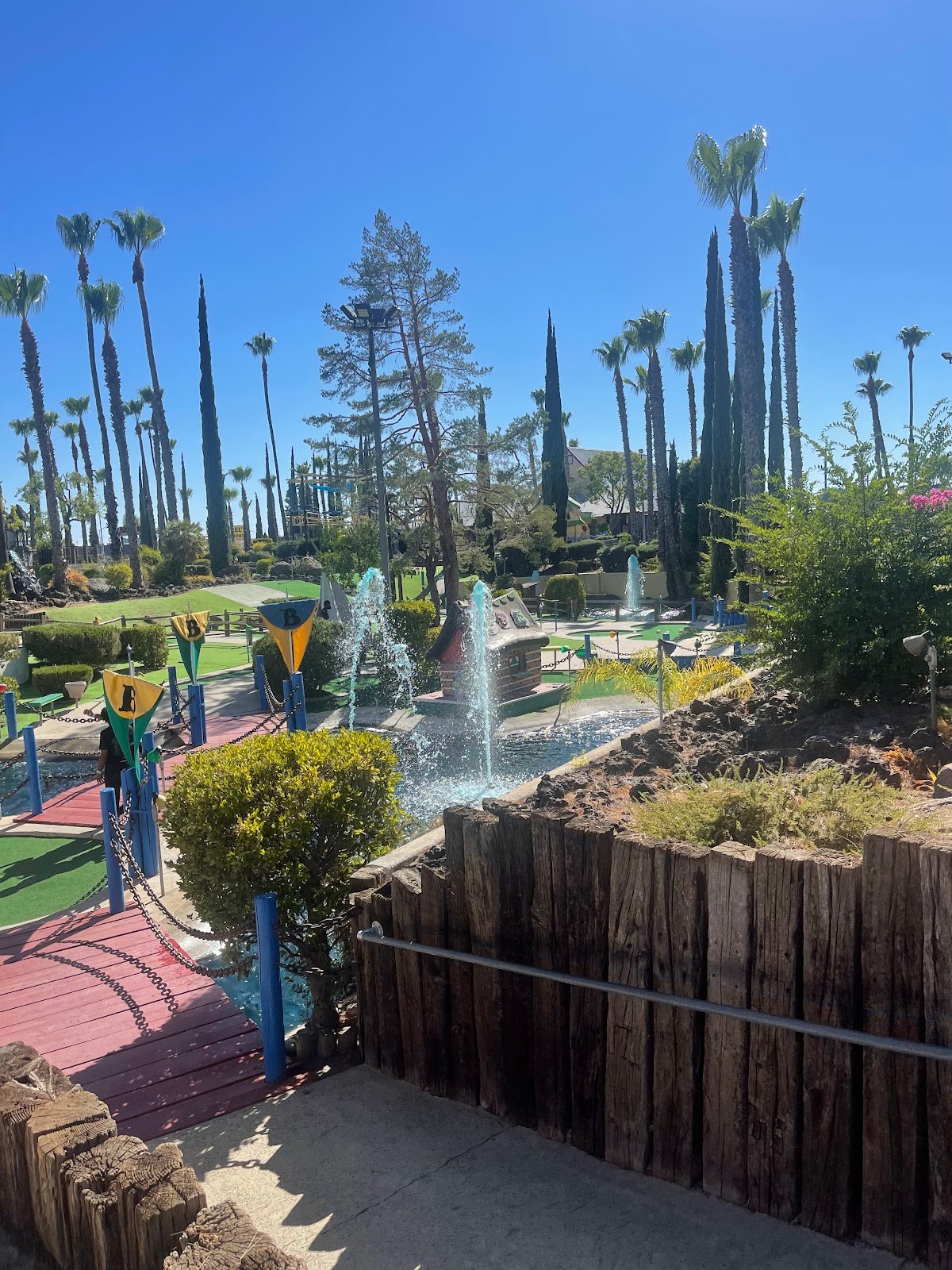 Wife husband and 13 year old son. About 40$ for one of the mini courses. We went early and that turned out to be cool if you don’t want to be rushed. I can see even slightly crowded you’re gonna have to move along. Great atmosphere. We only did mini golf but they have so much more.