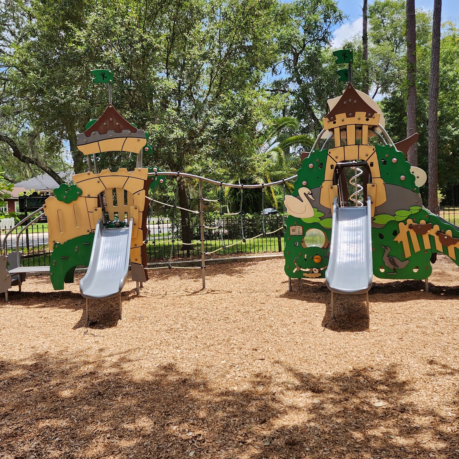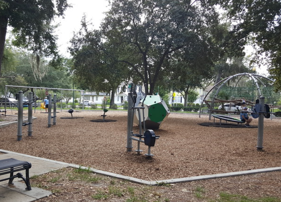 There is a play area in the front for children that is constantly bustling, plenty of benches scattered about to have get togethers or read, or bird watch.