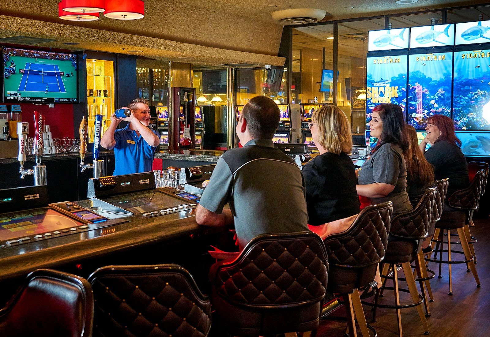 Man I don’t go to alot of casinos but my husband and I went to the nugget the other day and man we didn’t win but we met the best bartender ever. His name is Nate and he makes pretty good drinks and has wonderful customer service. He was very lively and always getting something done. The overall experience was pretty good and he got my husband to try a new drink I’ve been telling him about so yay. We will definitely be back