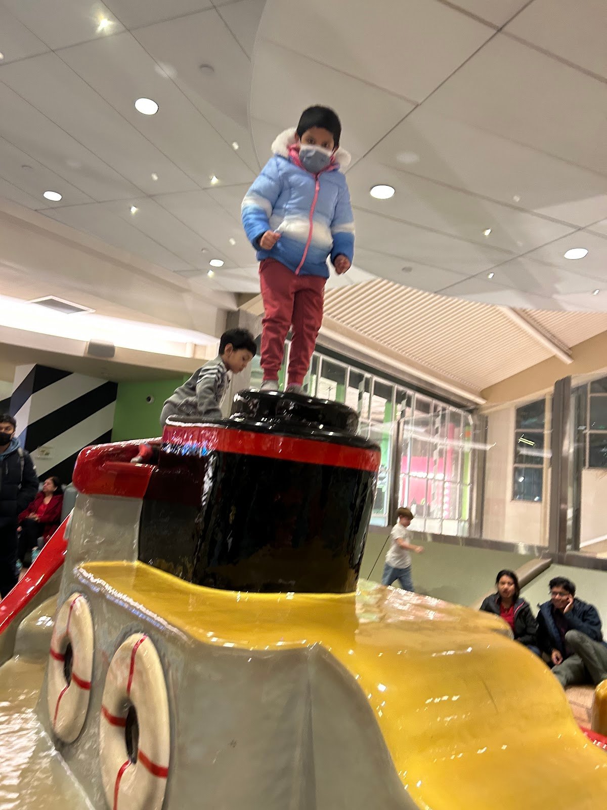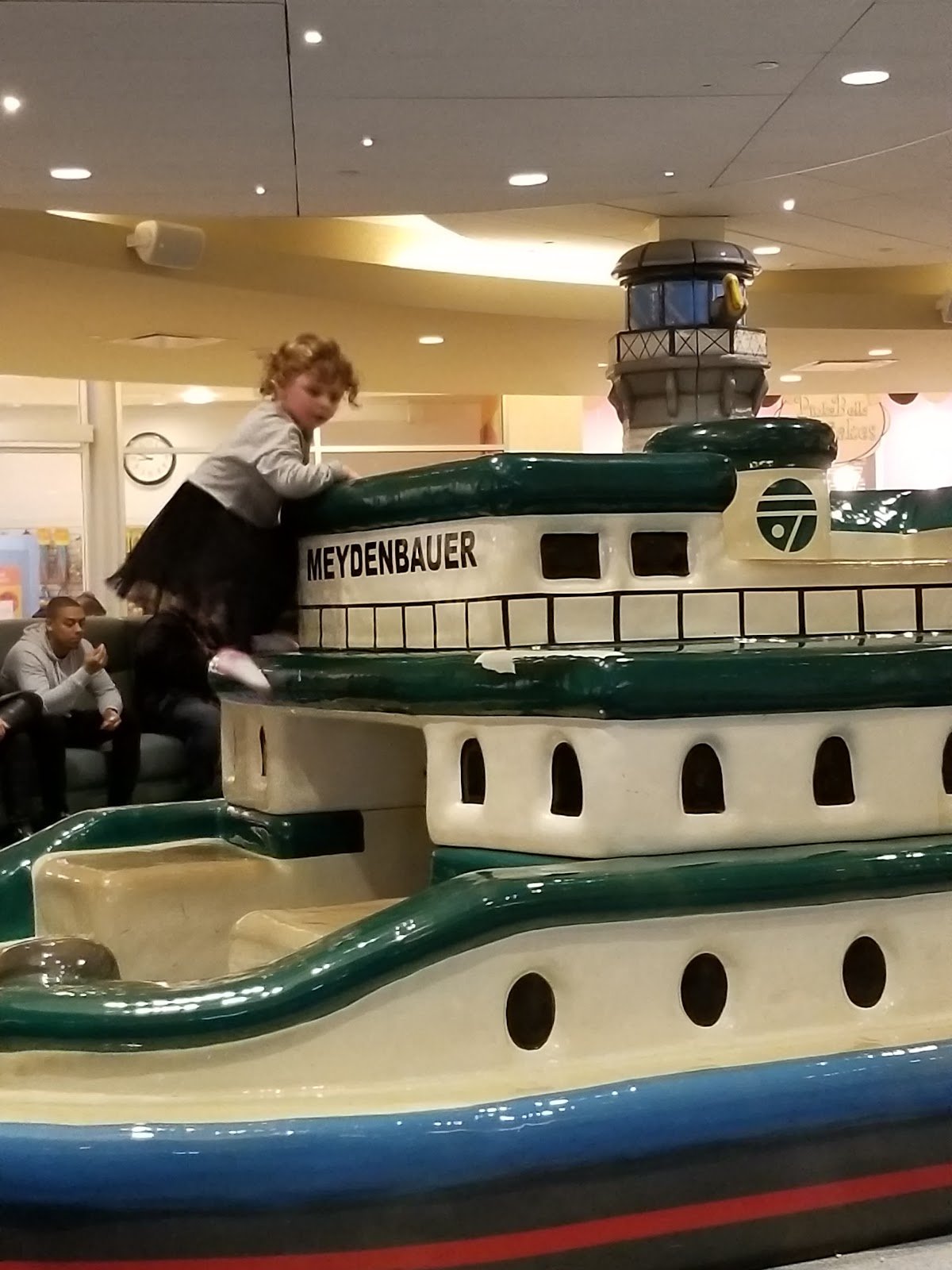 This lovely play area features ships and marine life with Puget Sound as its inspiration. It is perfect for younger kids to climb and slide. Since it’s on the third floor with only the cookie shop and Sharkey’s Kid Salon, it’s also relatively quiet and low traffic. My 3 y.o. loves it.