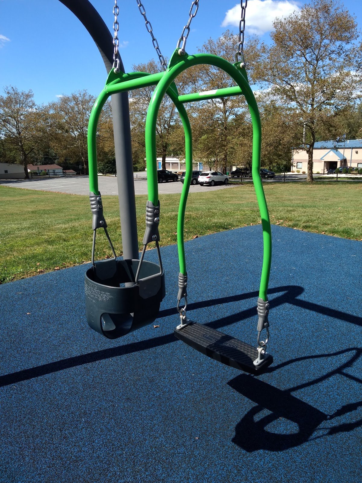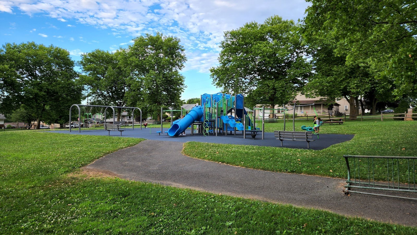My kids love this park. Swings, swings for parent and baby ( which I’ve never seen before) playground, slides, steering wheel at the top, picnic tables, grass to run around but also near a library. What’s not to love about this park.