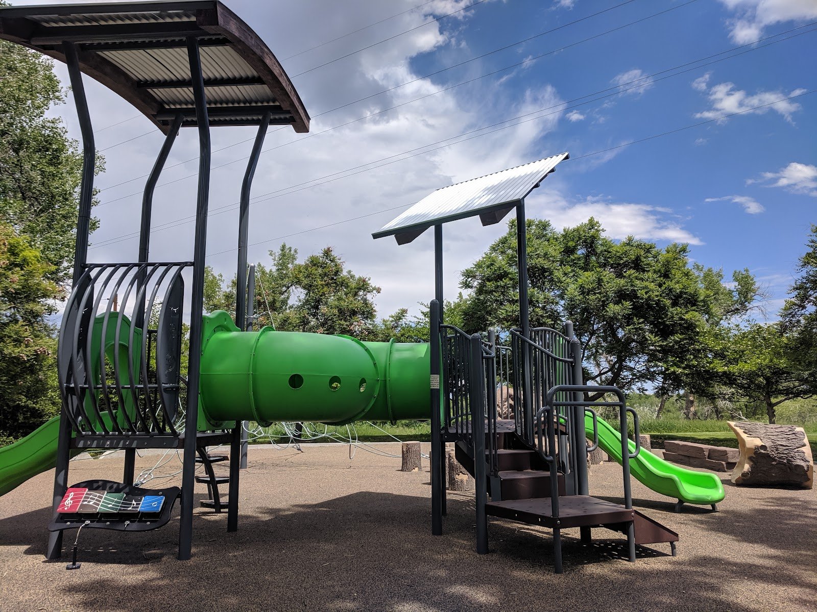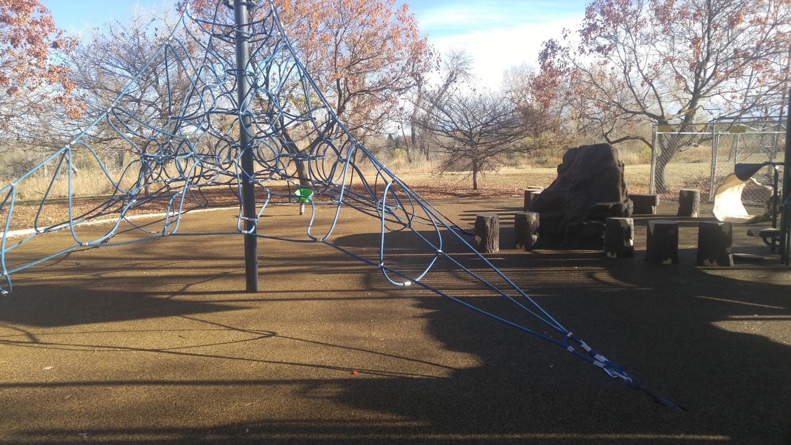 This is a great little playground for younger children. Short slides, a tunnel, and infant/toddler swings. Plus the ground is a soft with nothing for the little ones to pick up and eat. Grade school kids can have fun here too with some rock climbing and a rope climbing gym.