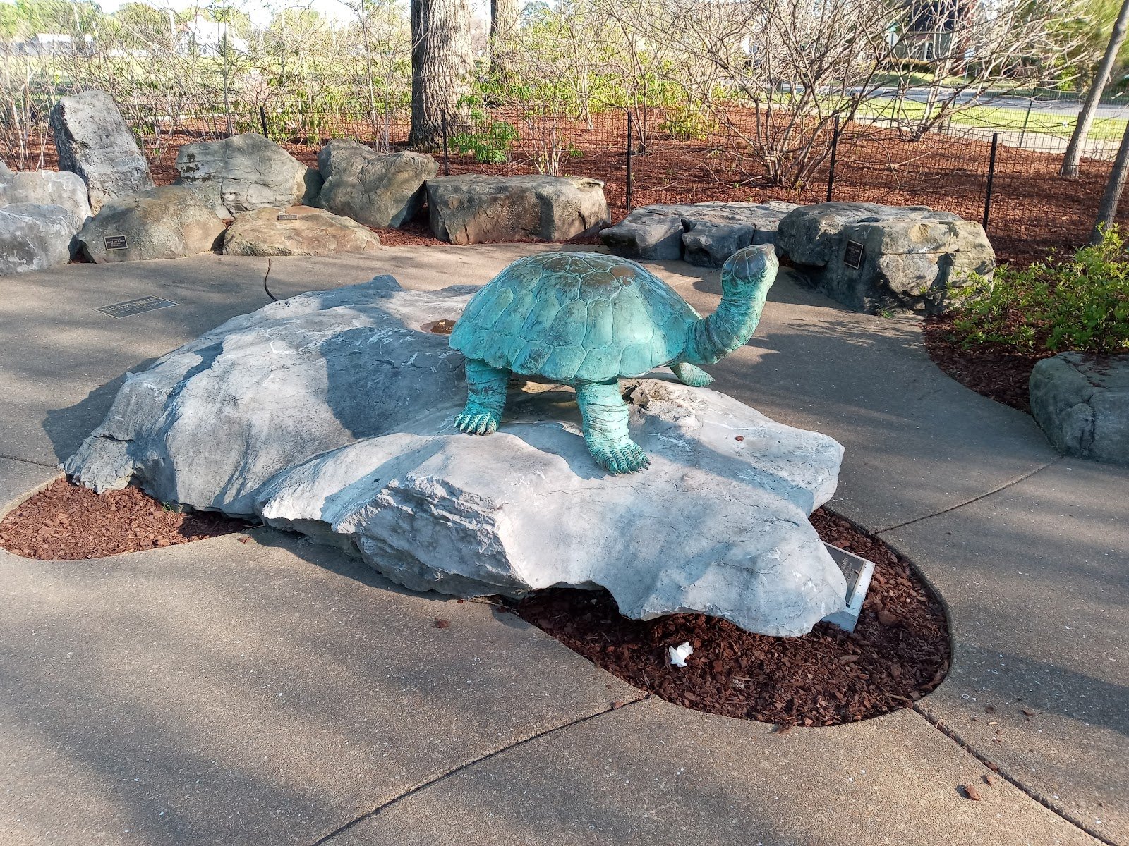 Went here with my Husband and adult Son. Bathrooms were clean. Park had lots of picnic areas and walking trails. The park has a very nice, large playground for kids. There are many informative markers telling you about various animals and plants found in the area. They had several sculptures that made awesome photo opps, such as a giant dragonfly made of found items, a Rabbit, several frogs, a beaver and a nice round area that had metal fish of different sizes in the concrete rotunda. Each fish had the name of a type of fish found in Alabama. There are many unusual , beautiful plants here and the park actually continues down the road , as a beautiful rose garden. The park is next to.the Kiwanis park which has many fields for those who wish to play sports.