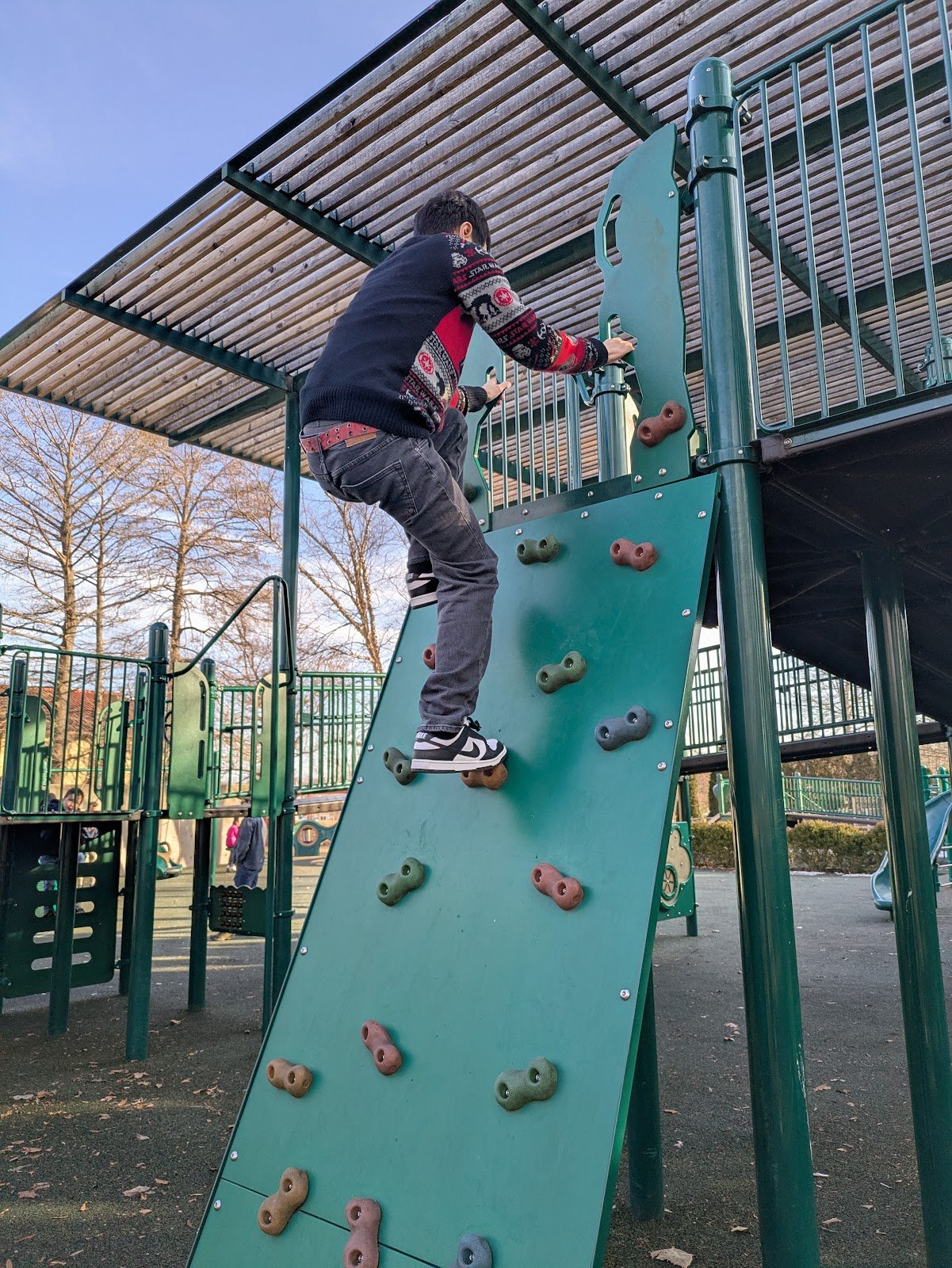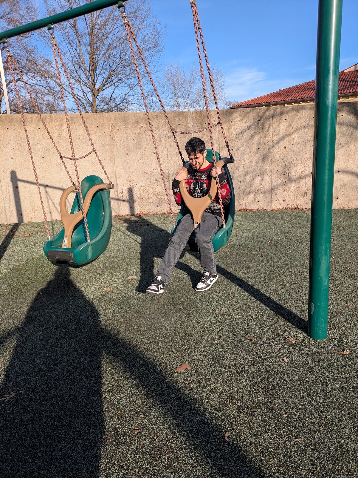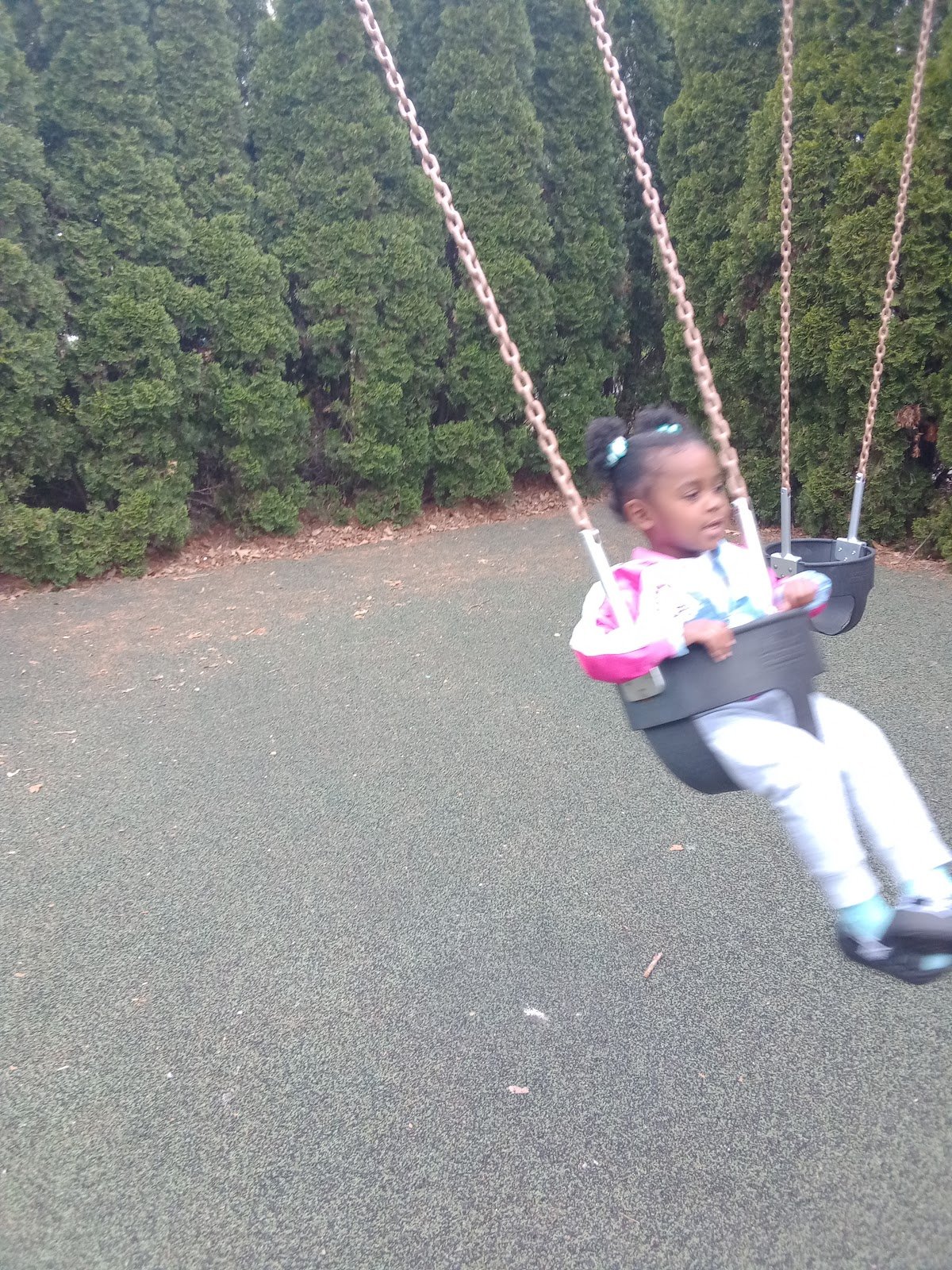 Great park for kiddos of all ages. My son is 23 and on the Autism spectrum, he was able to fit on the swings and had an amazing day!!!