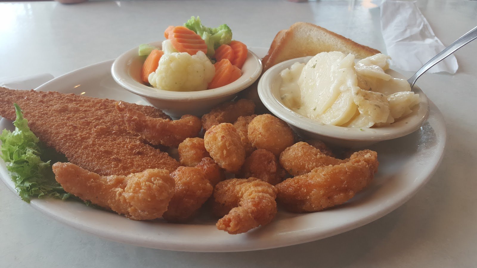 I love this place! I’ve eaten here before, and I was delighted I could share it with my daughter. We both had the grilled chicken salad. It was huge, and quite delicious, loaded with chicken and veggies. The jalapeƱo poppers were great, too!! Shared a piece of cheesecake for dessert!! So good with strawberries!! It was a wonderful lunch
