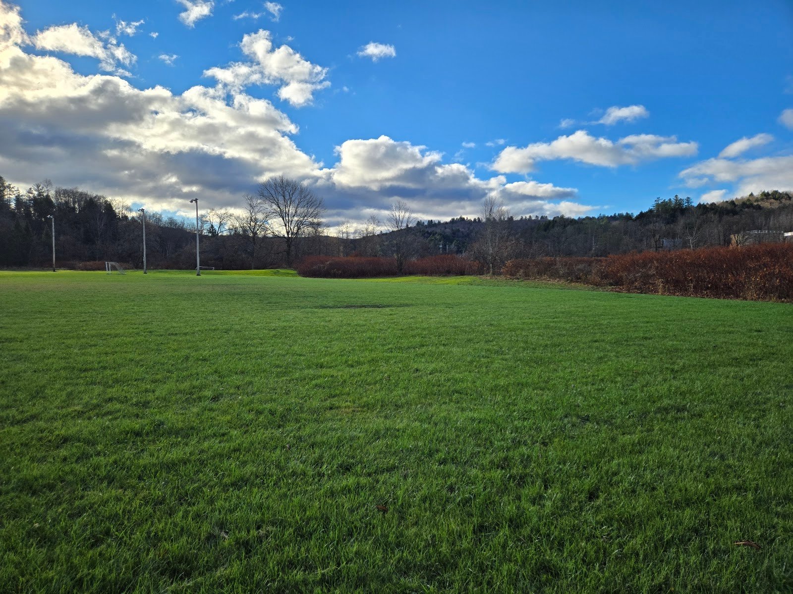 The field is always clean and maintained. Plenty of room for dogs to run and other activities. Many paths down to the river.