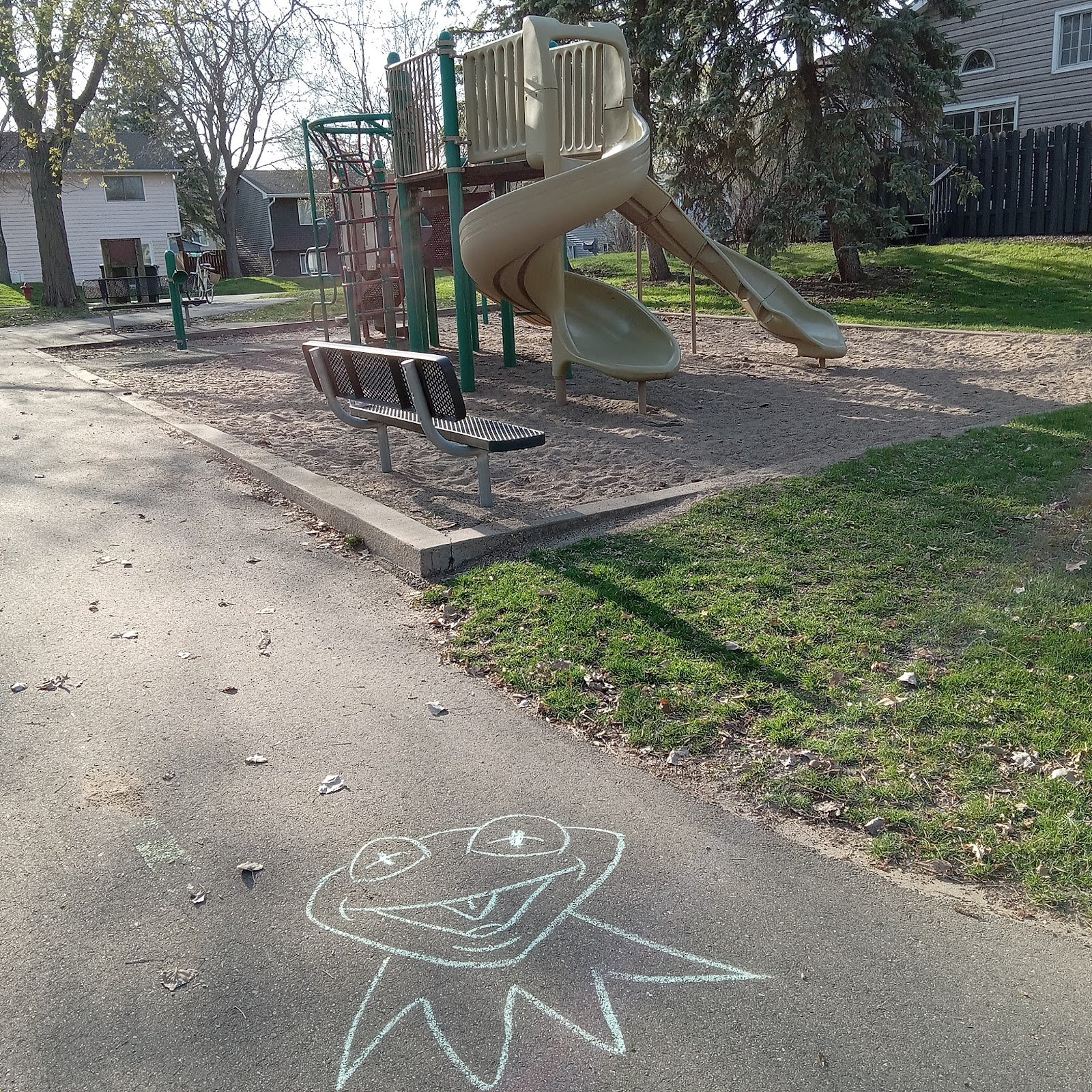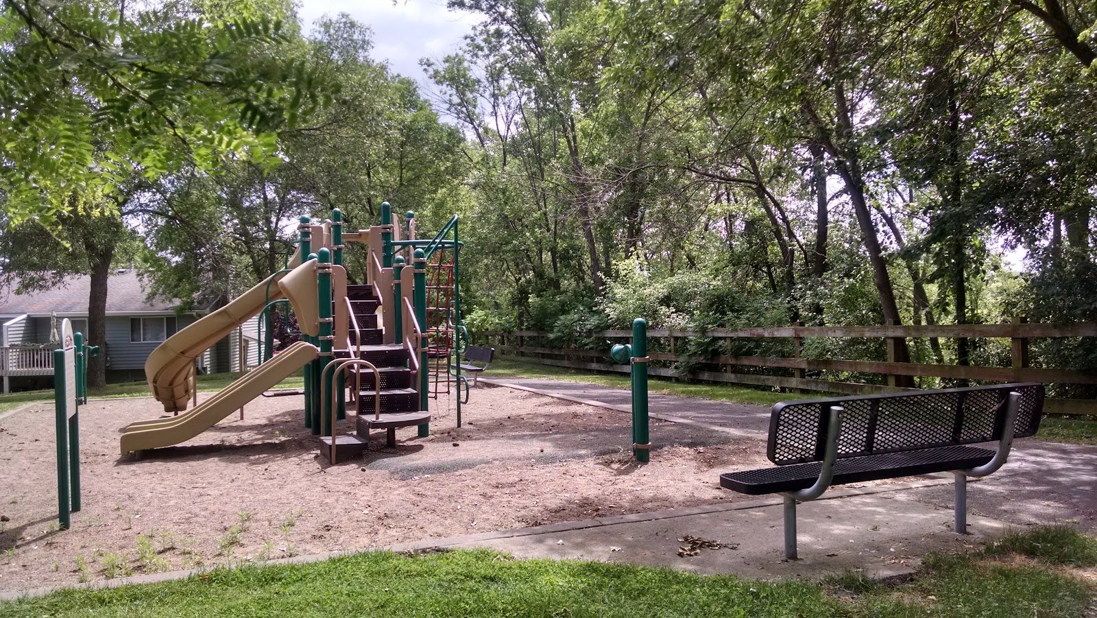 No drinking fountain but there’s a playground with slides and things to climb on