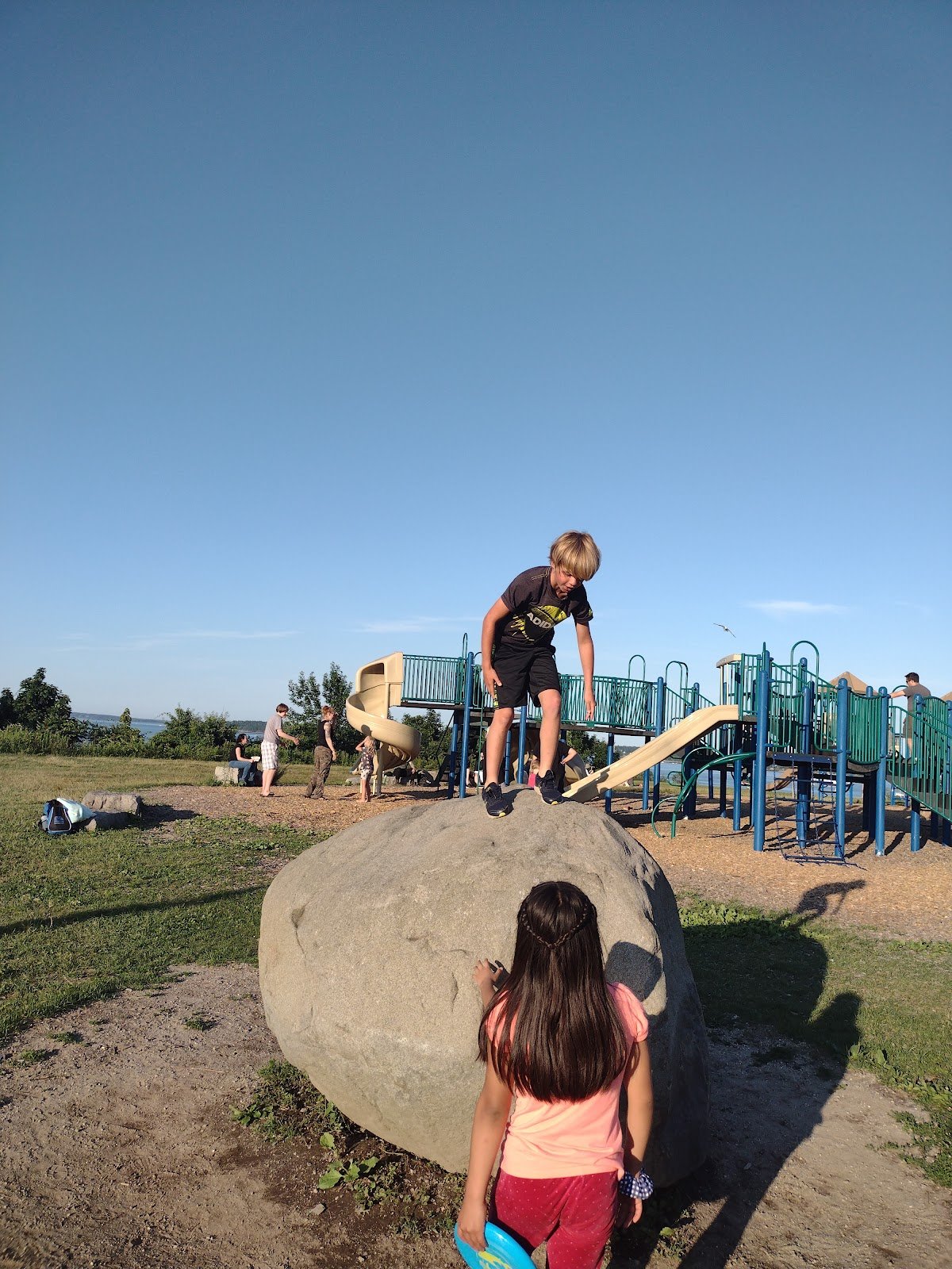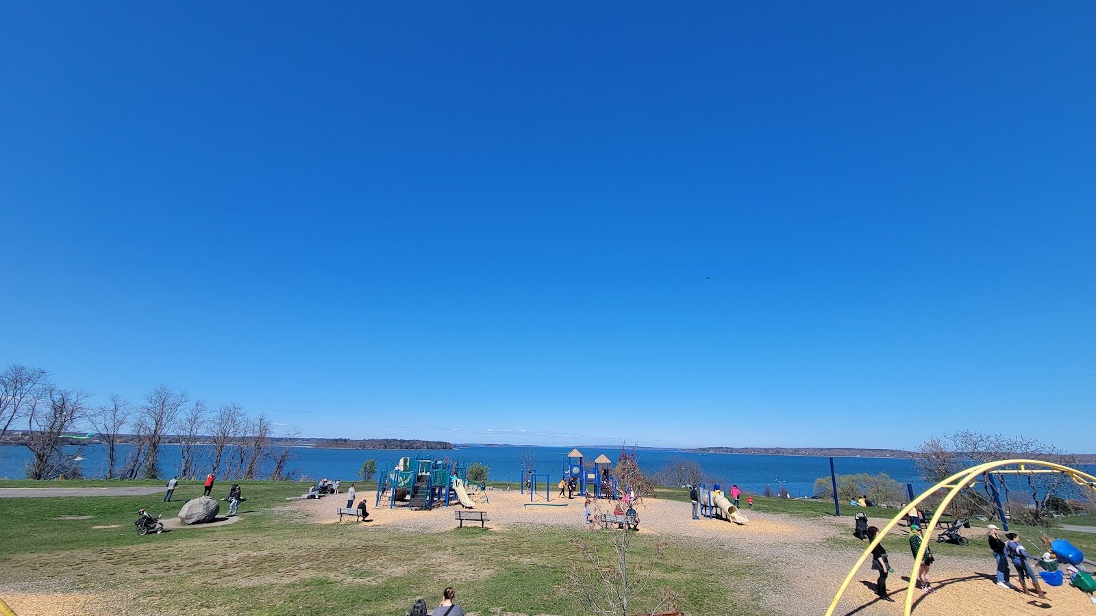 Nice playground for small children. Great views of the bay. No shade or bathrooms. Food trucks in the parking lot.