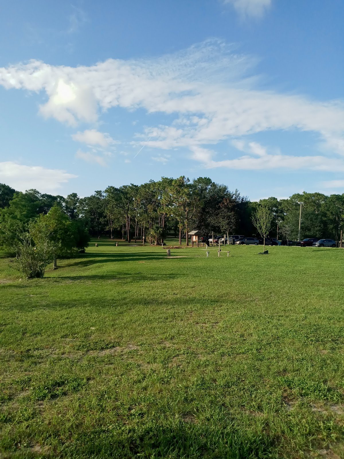 It has a fantastic walking/running/biking trail. 1.75miles. It goes around the whole park. Very clean. The dog park is cute and completely gated for small and large dogs. There are lots of seating areas throughout and shade. The new playground is perfect for young children. It is also completely gated. Lots to do. Come check it out.