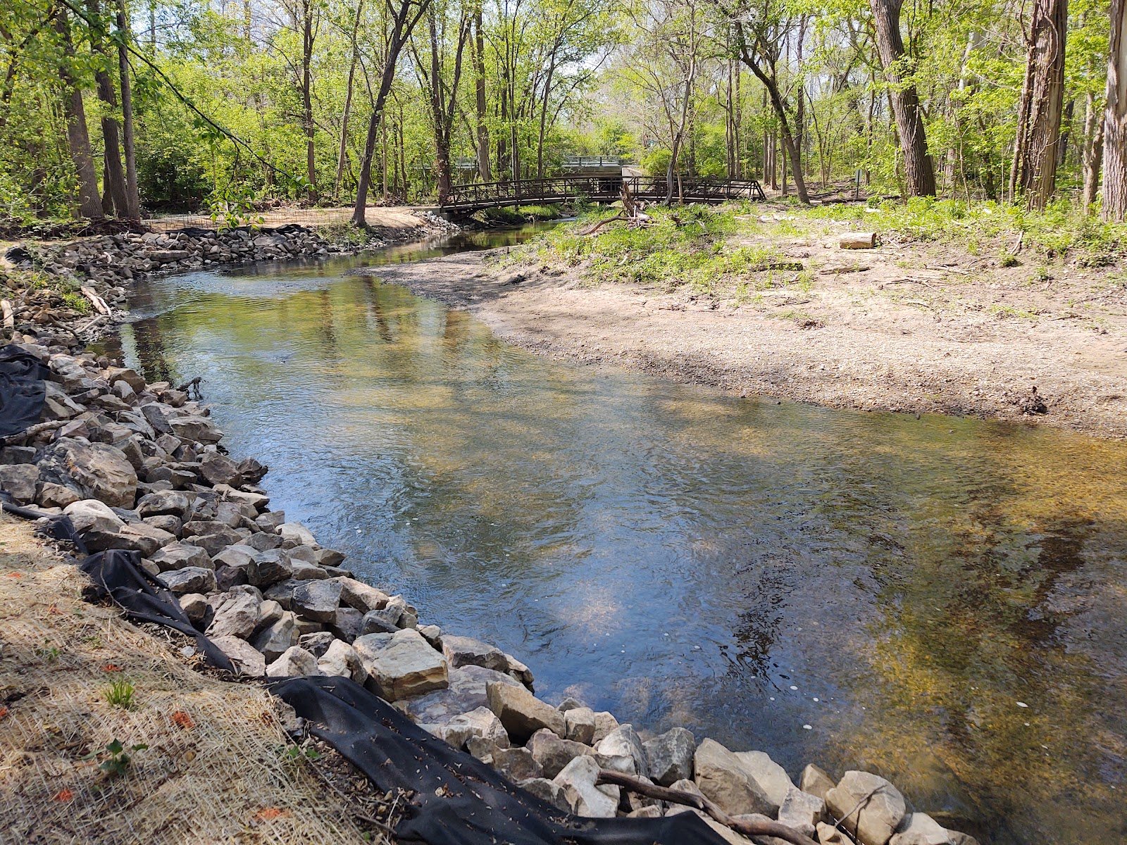 Lovely park. Nice walking paths. Easy access to the creek. Parts of the creek are a couple feet deep so kids can swim a little. The flowing well part I’ve been going to for 50 years. If you look around, you can find a lot of wildlife and fish. For fish, go just beyond where everyone is playing in the creek and you’ll see them. There is a little picnic shelter with a couple of tables and plenty of benches scattered around the walking path and flowing well area. Some of the path up front is paved and easily manuavered for people with mobility issues. The rest of the walking paths are not handicapped friendly. I recommend grabbing some bug spray 🙂 before walking the paths. It is a bit noisy from 116th Street traffic. Nice restrooms and plenty of garbage cans.