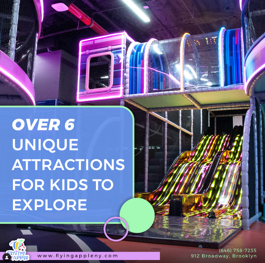 Flying Apple NY offers an exciting and safe environment with Obstacle Course, VR Games, Soft Play. A great place for kids and families. Families love visiting for its fun-filled experience.
