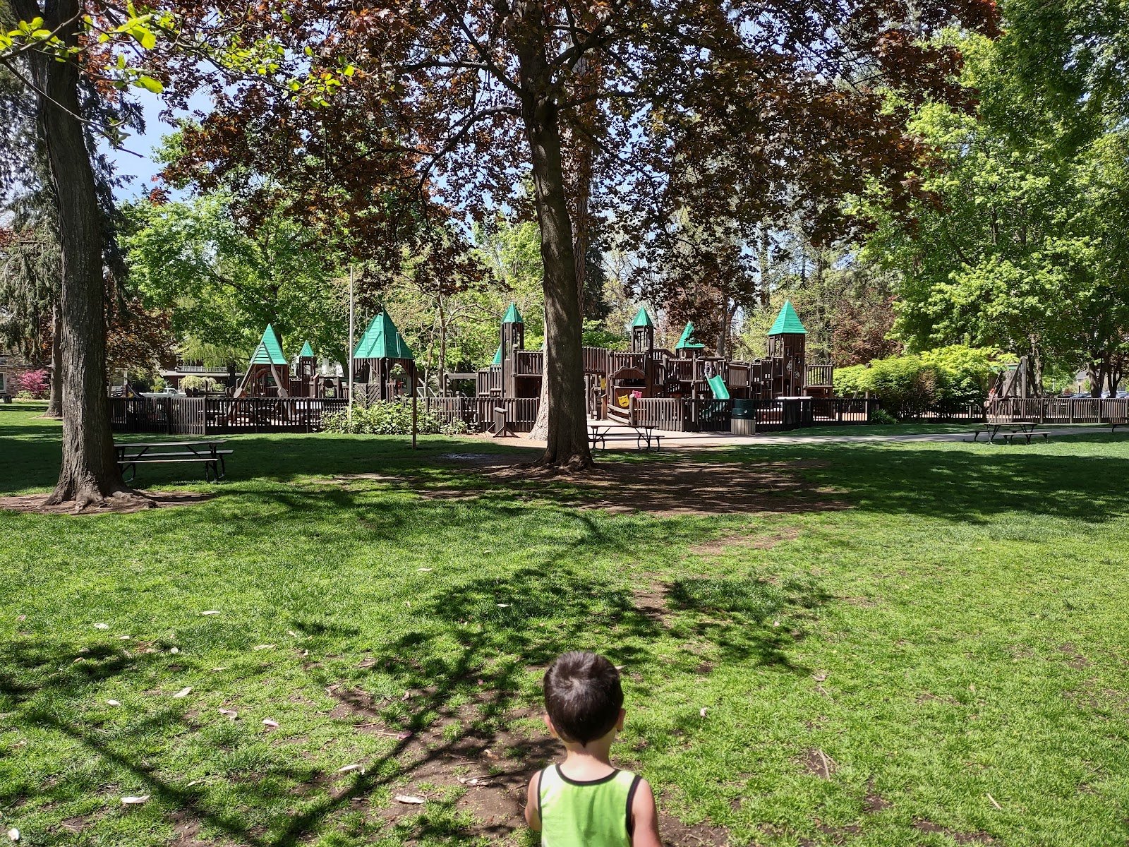 Stopped here to play on our way across the country. Lovely park. So much nice green shaded open space. Always a fan of a Leathers & Assoc. play structure. This one has been wonderfully maintained with all the usual goodies and quirks. Wonderful view over the lake too! Parking was a nightmare.