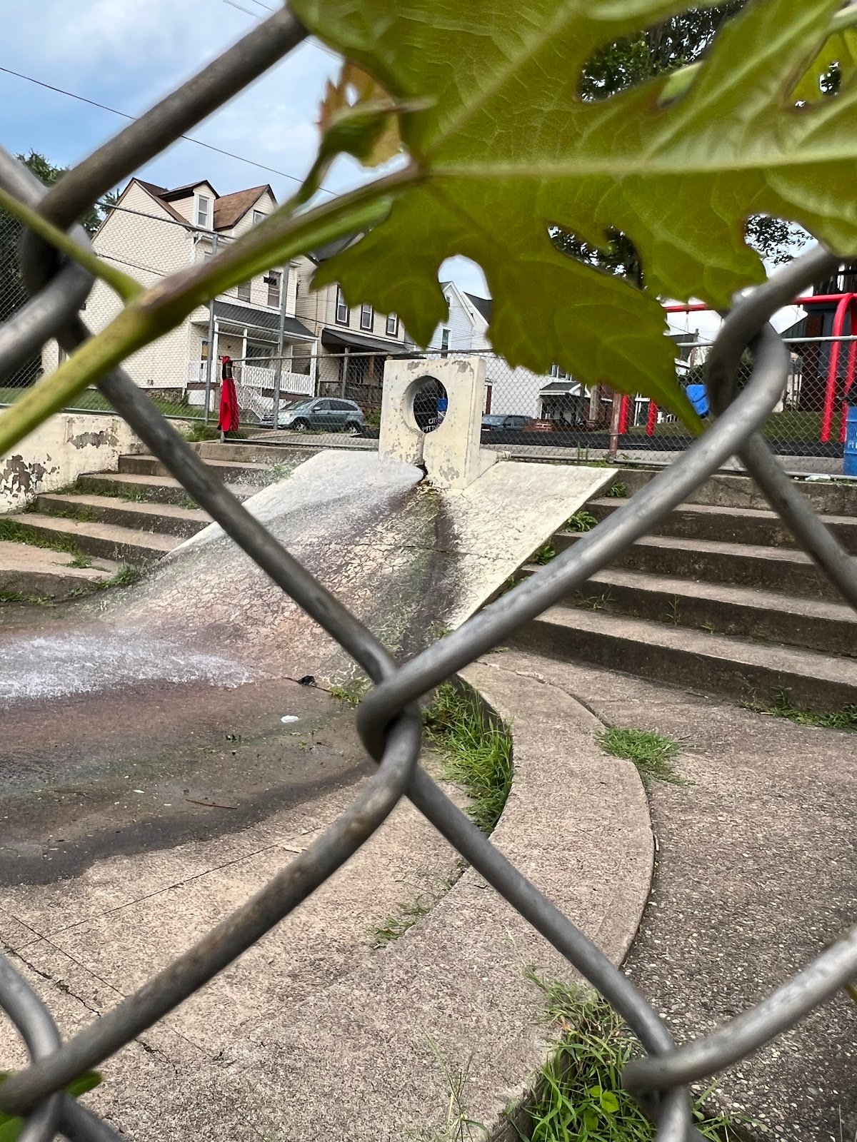 Nice playground but the spray part is kind of in inviting. What is that a sewer pipe bust?