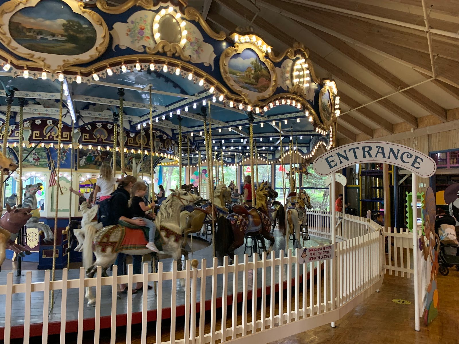 We rode the carousel, tried the Mountain, better for kids a little older. Will say, though, that the slide is wicked fast and fun. Just watch your tailbone on the landing.