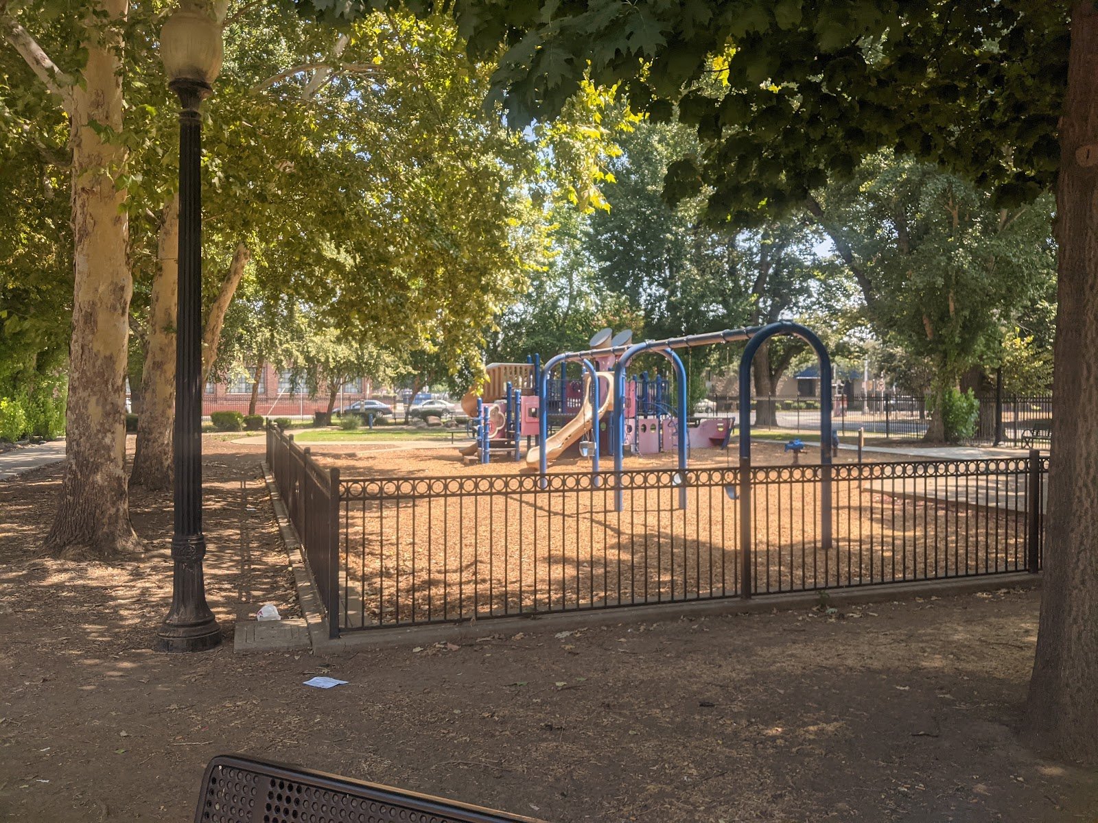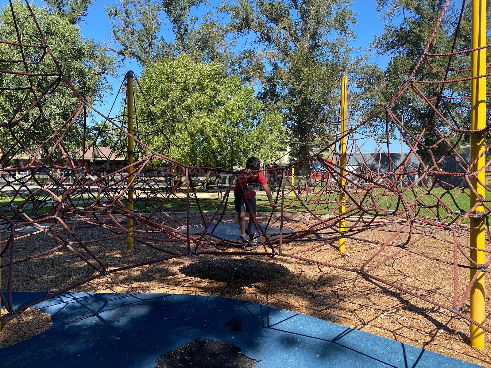 Charming Park It feels more like a dog park because it’s completely gated. My favorite part is the spider web gymnasium.