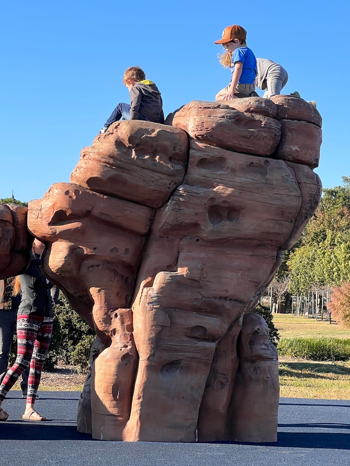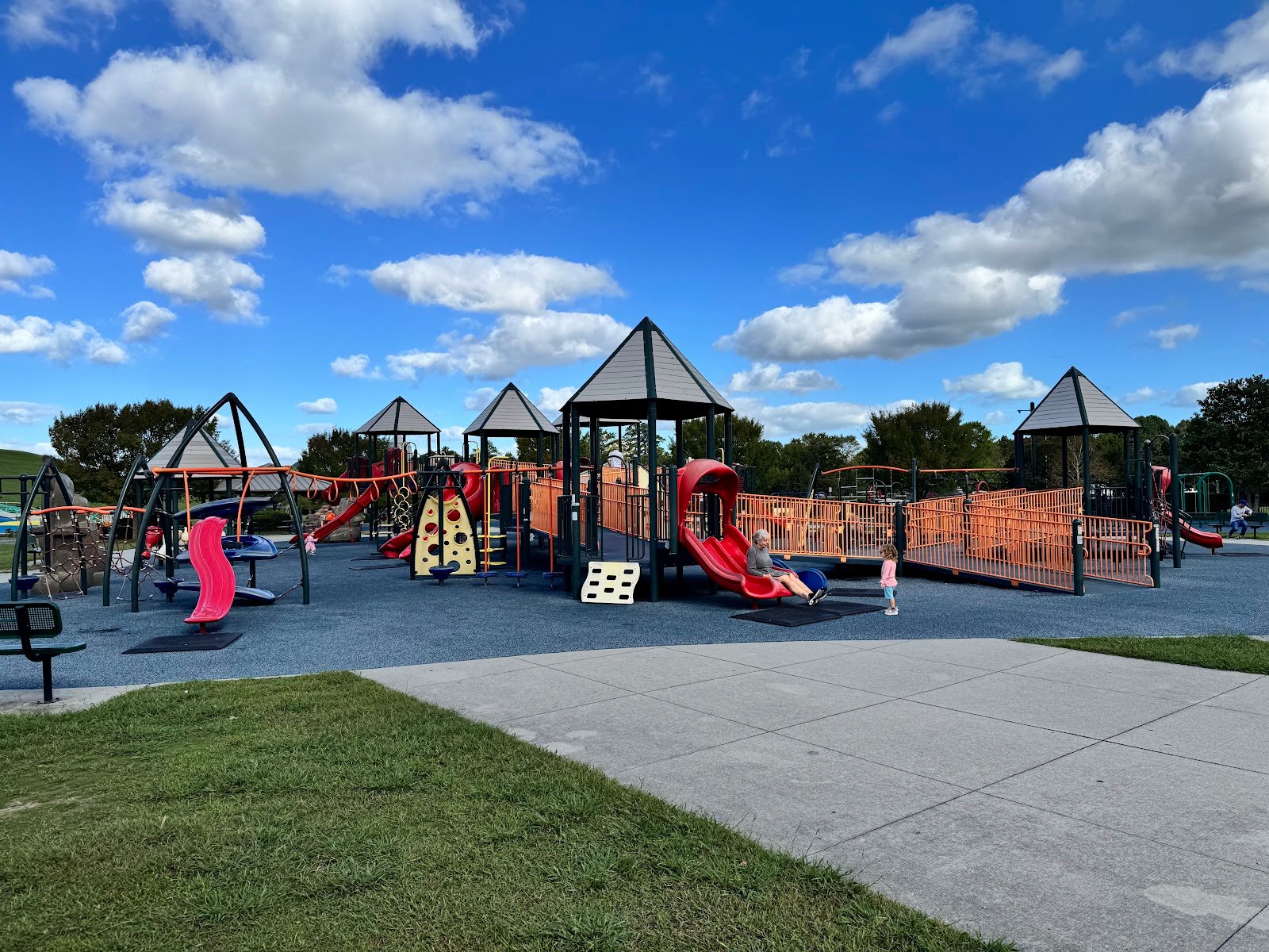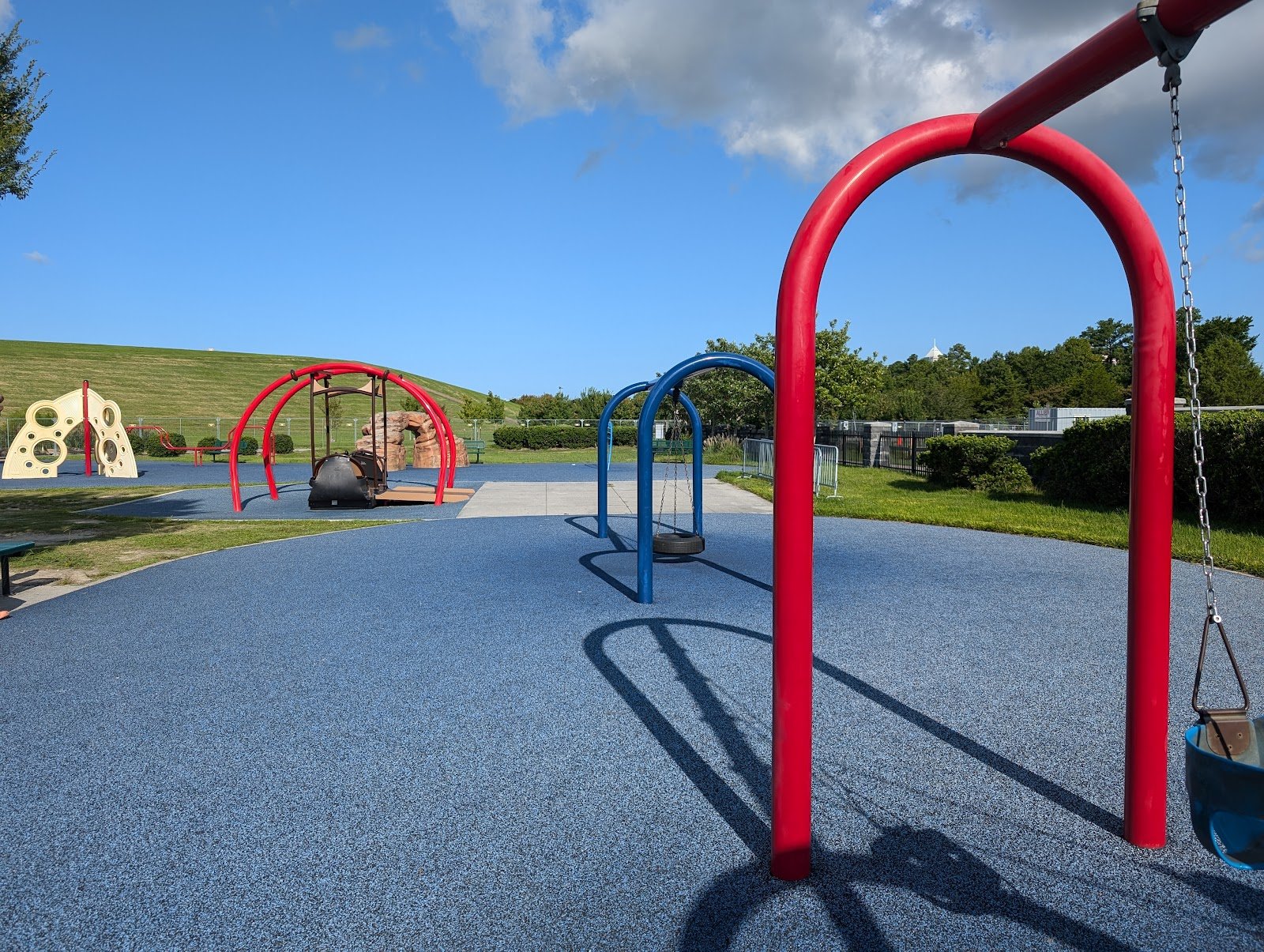 Great playground for any age, especially younger kids. It’s handicap accessible so it makes it great to play for younger kids. There’s also some more challenging things to climb for older kids as well though. Great place for kids who get overwhelmed by the beach or sand.