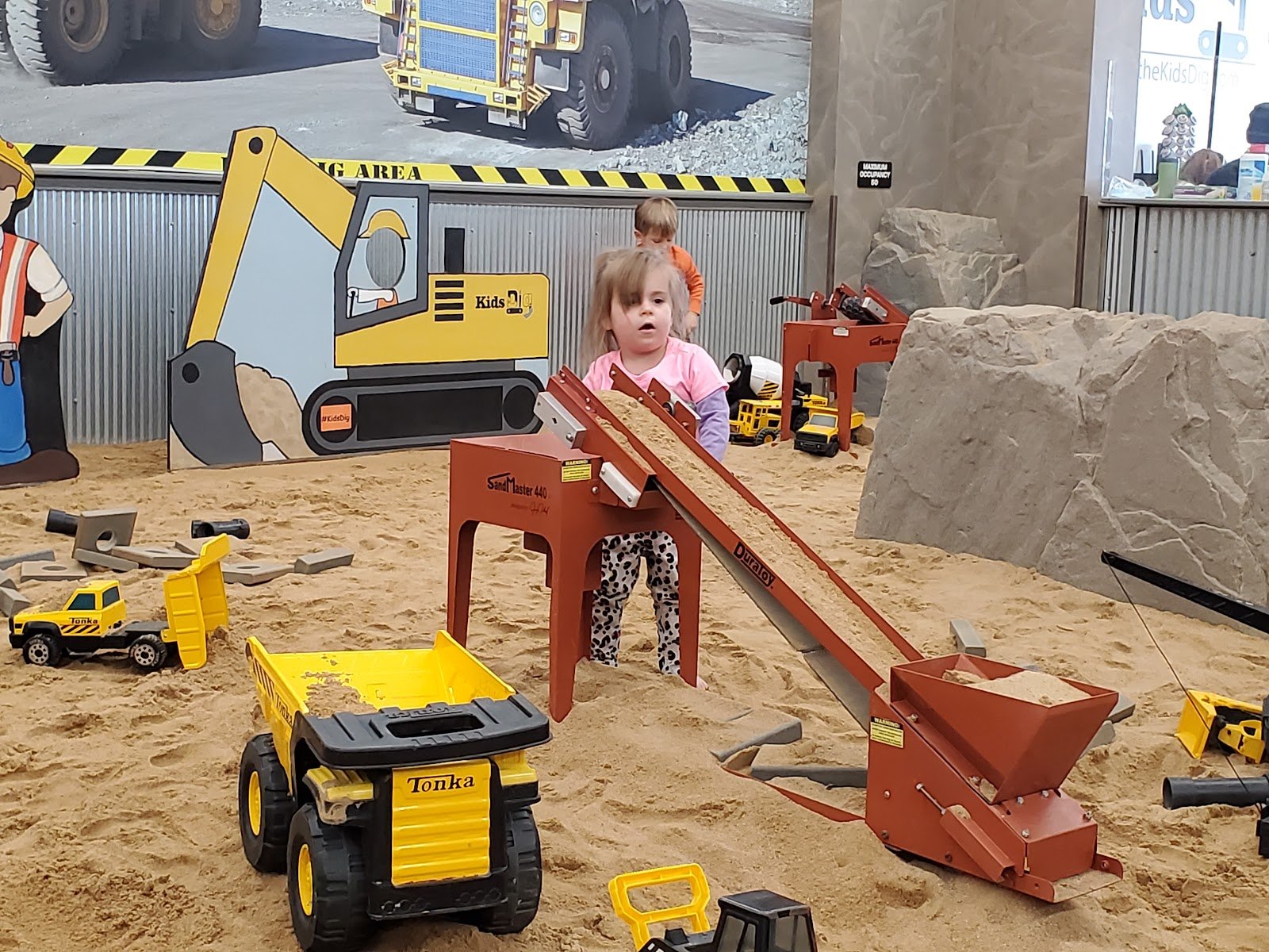 Very cool place to take your kids if you don’t mind a little sand in the pants ⛱️ . Very cool for any kid that loves to play with construction vehicles. Plenty of benches to sit on, and they have a snack area to put your snacks if you bring them. Would love for the place to be bigger. It’s about the size for your average boutique retail store. If they ever expand, it could drop the prices and you may be able to do day passes instead of hourly. Still is cool though to bring your kiddos (age 7 and under) too.