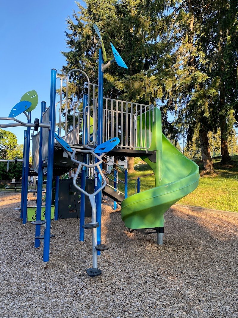 This is a wonderful playground for young kids/toddlers. Lots of space to explore. Blackberry bush everywhere if you are there in July/August. The playground is mostly in shade so it’s really pleasant for everyone. The only downside is that there isn’t any proper washroom. I think there is a probable.