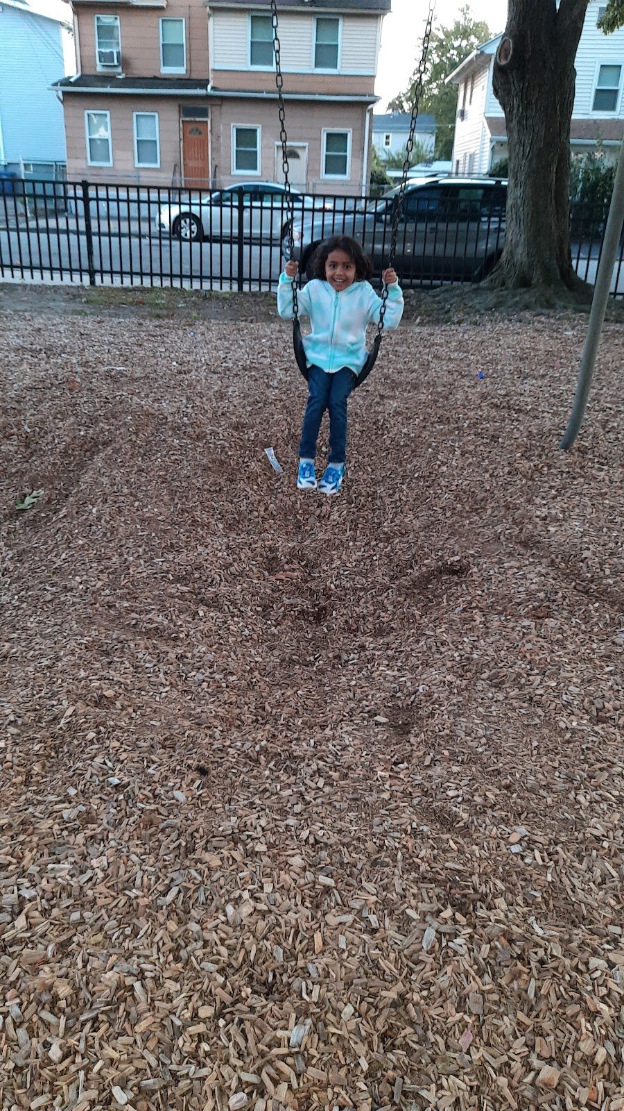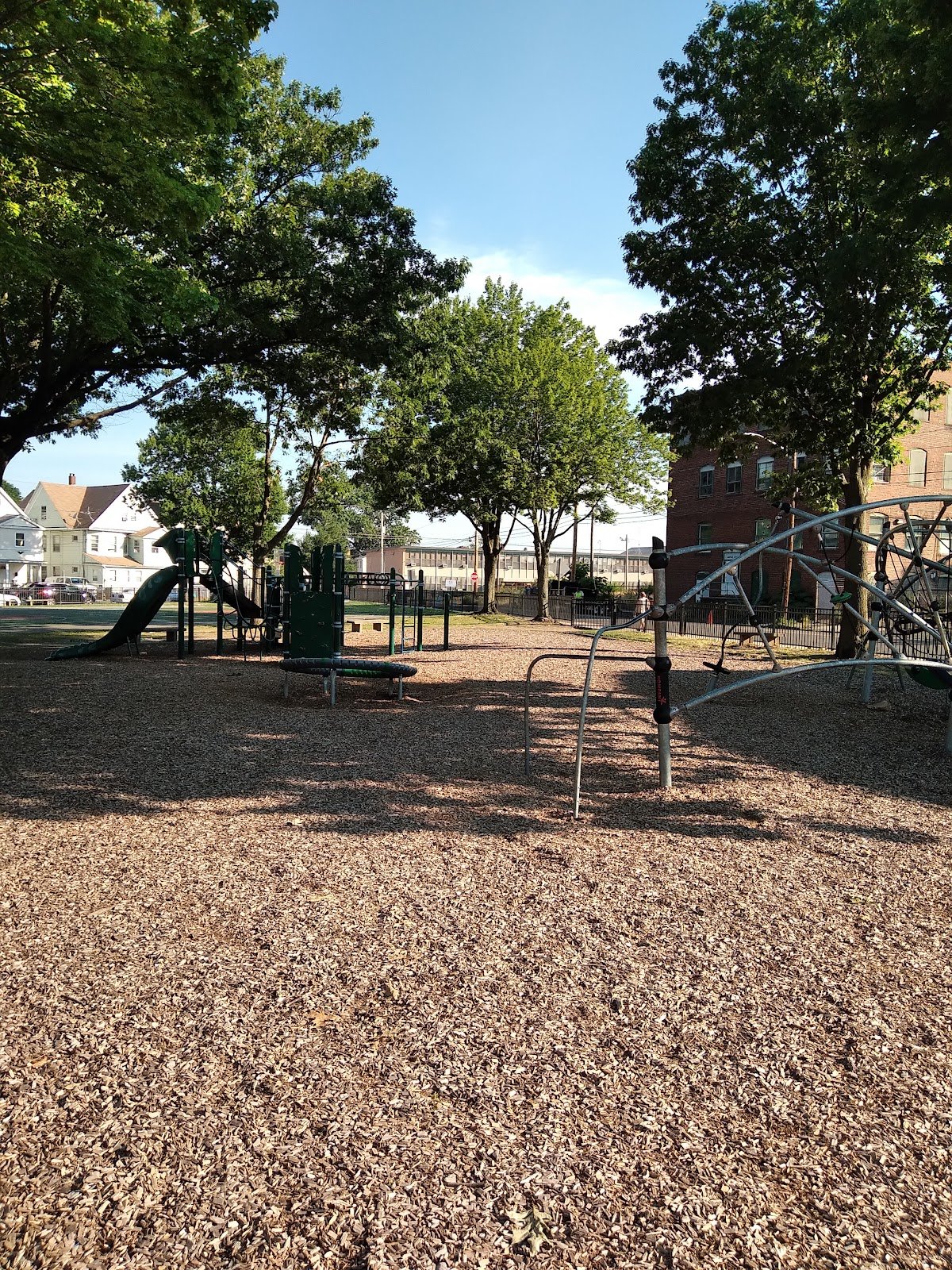 It has changed ALOT since i grew up, but it has a paved basketball court, and the playground area is nice and shaded!! They use i think cedar chips in the playground area and where you can sit and relax!!