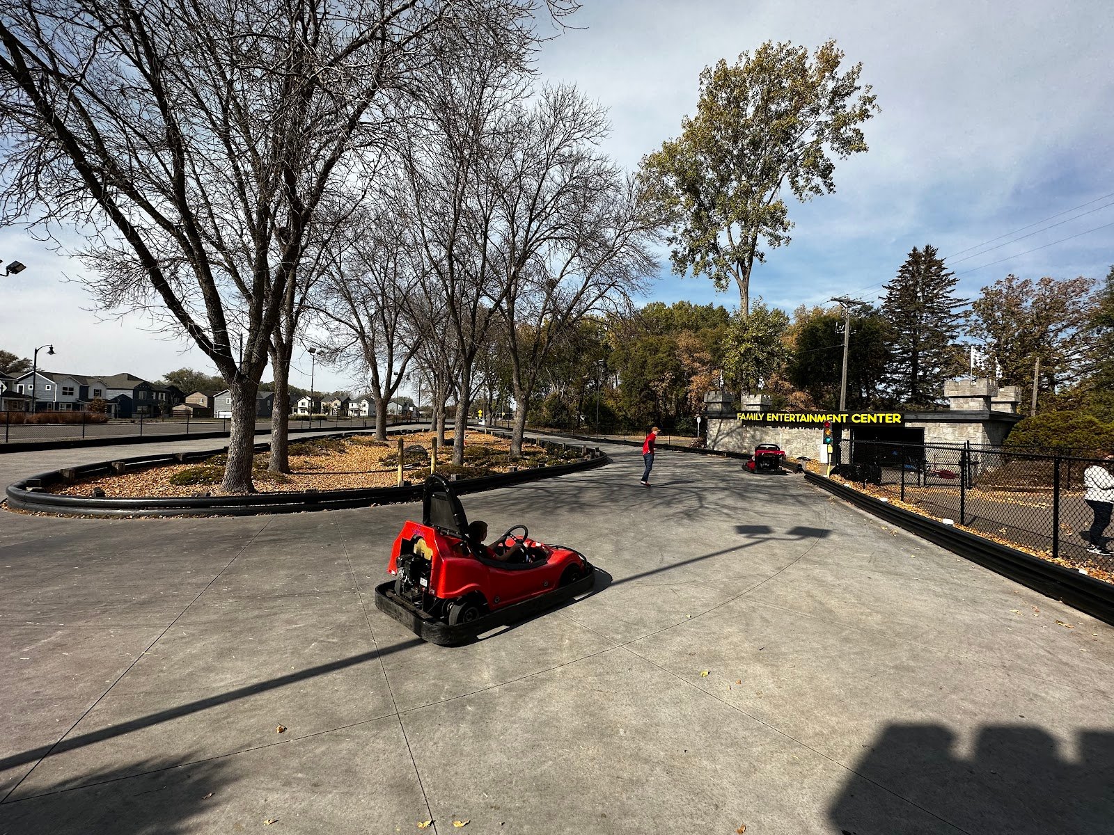 The smaller go-carts are for kids over 4, which was nice for my 6 year old who is too short for the full speed ones. He was so proud to drive himself.