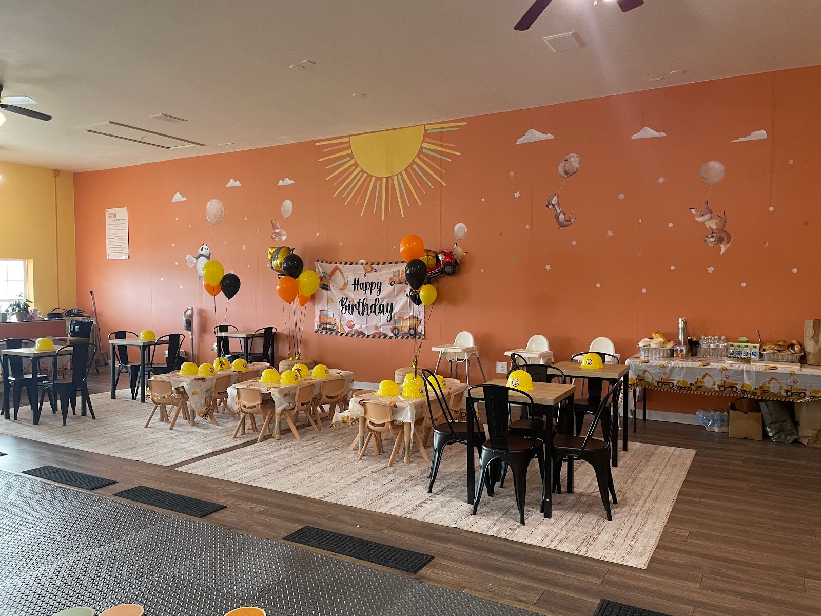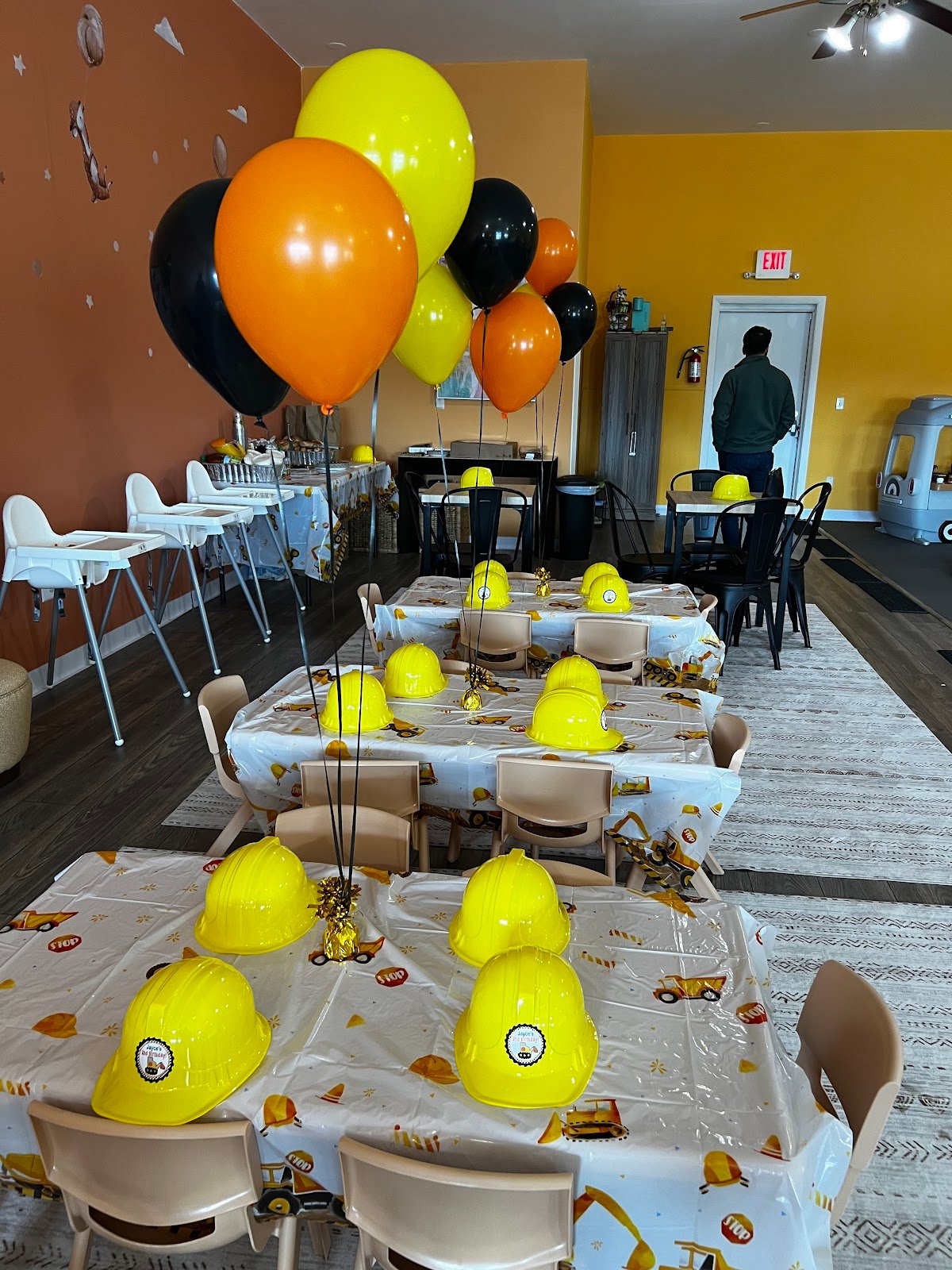 Since my son’s party we have been back several times to play. There are high chairs, a changing table, little kids tables, and plenty of toys for littles!