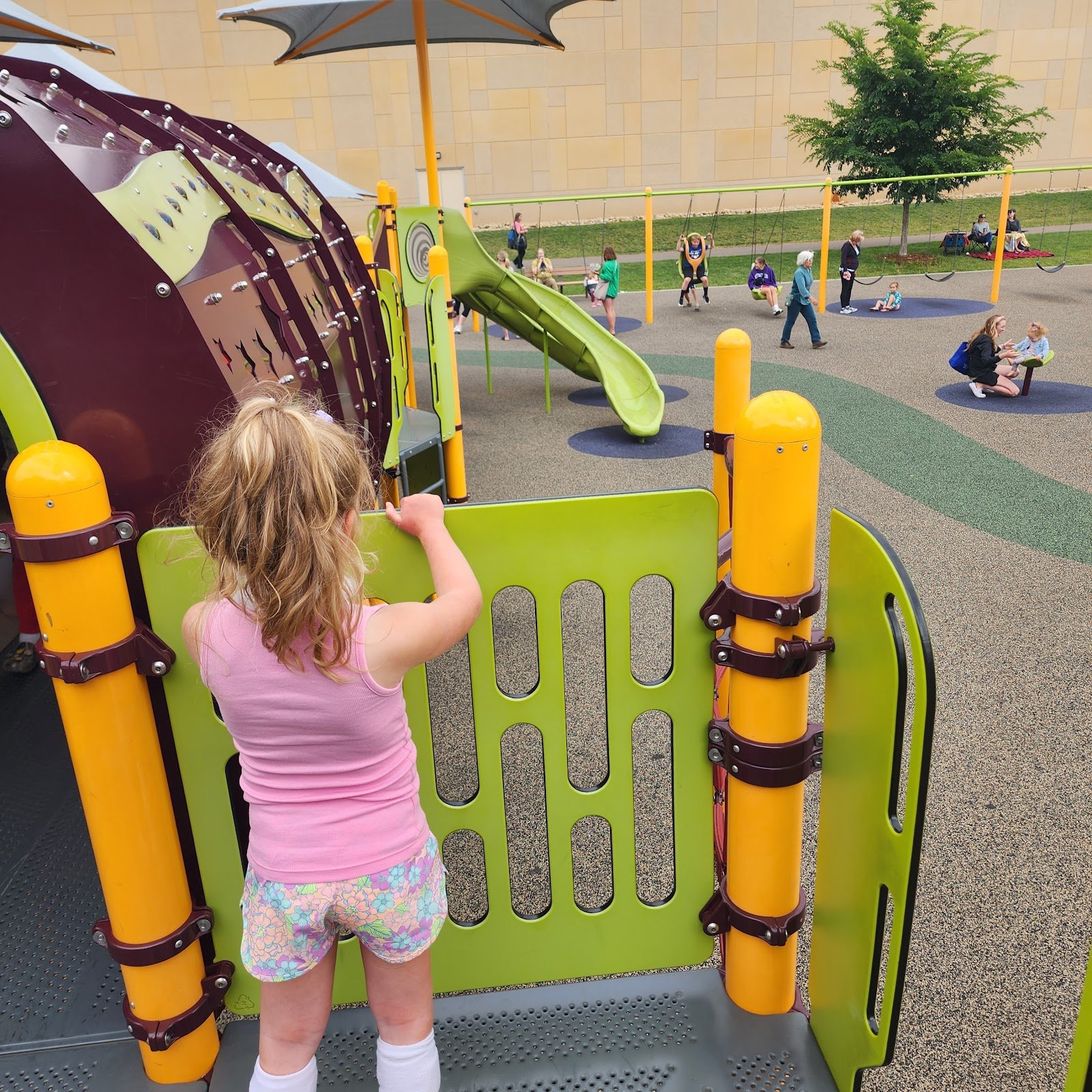 This place is huge! I love it! All-inclusive for special needs and disabilities. A wide range of ages can enjoy the playground equipment with slides, stairs, ramps, ladders, monkey bars, spinning seats, teeter totters, and music station.