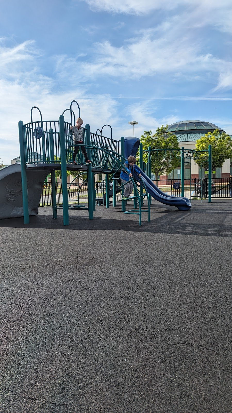 My kids love this playground. It’s good for smaller kids. My 8 yr old still enjoys coming but gets bored easily. All the playground equipment is too small for him. My 4 and 3 yr old have almost outgrown the swings. It’s a small playground. I enjoy bringing them for just reason. They very rarely get hurt and they can play with pretty much everything here. I dont have to limit them. The people are typically friendly and the kids play together well.