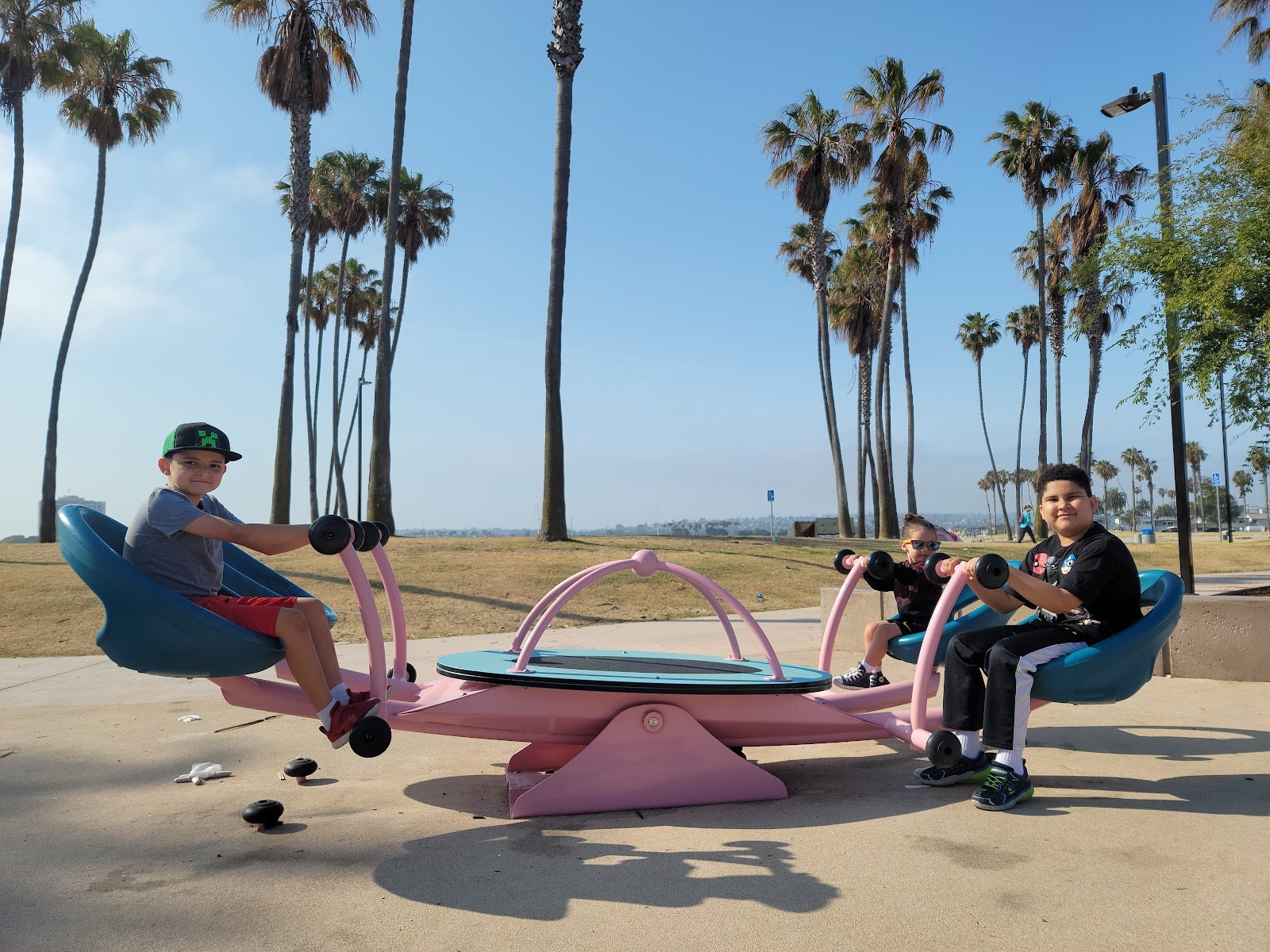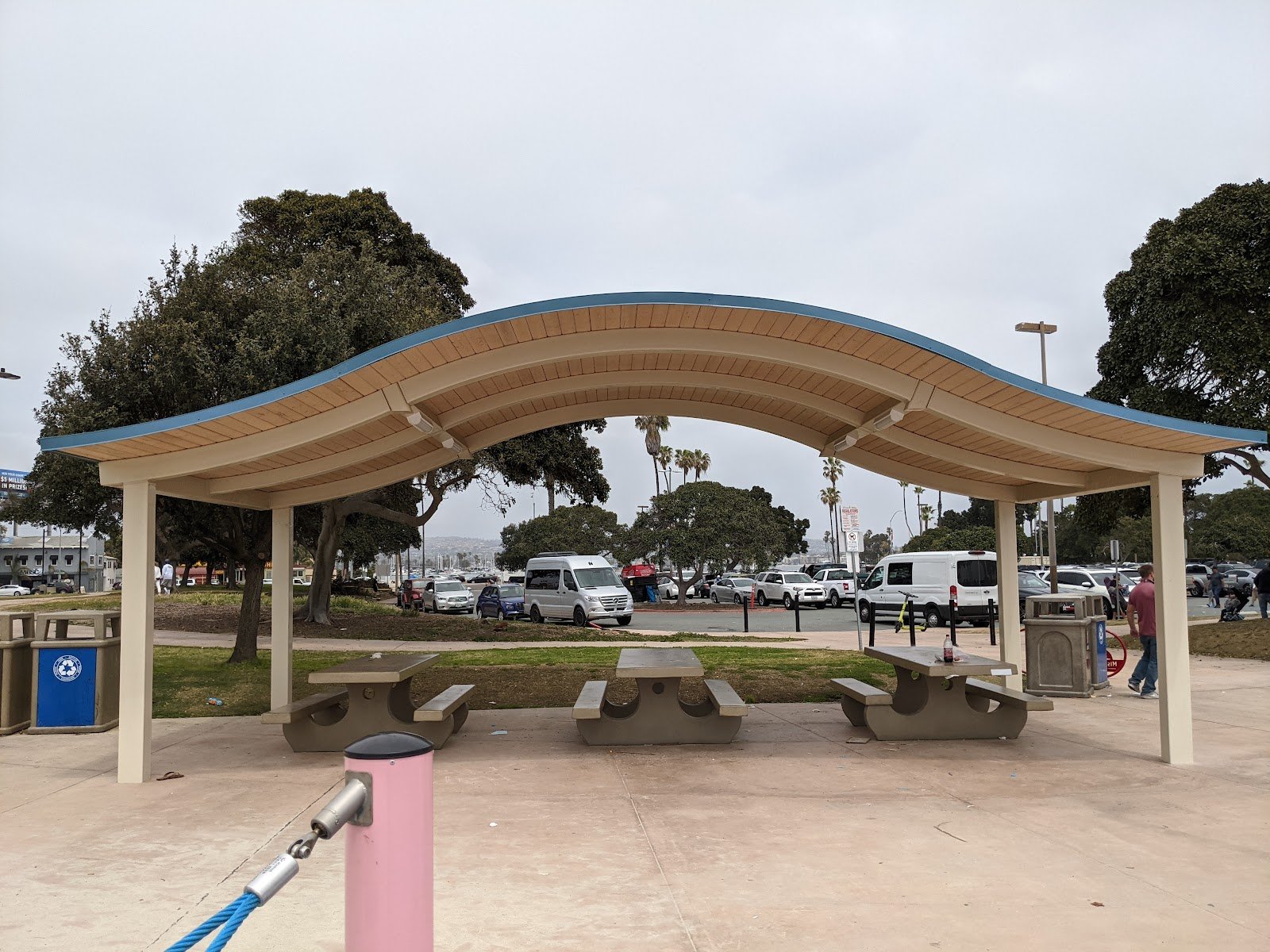 Really fun playground located right across the street from the Belmont Park area. It’s right between the bay and the ocean. There are bathrooms and showers, volleyball courts, lots of engaging structures for a variety of ages, benches, and chairs, grassy areas, etc. Would highly recommend.