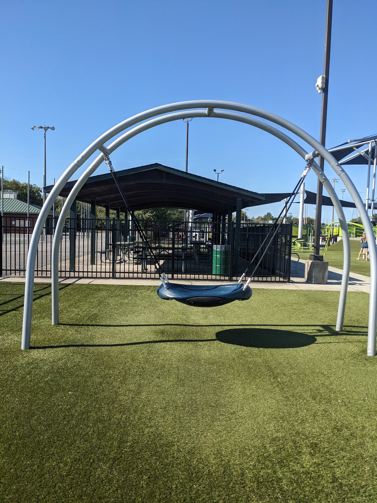 Visited from Florida; What a wonderful place! My two kids (8 and 6) loved this park more than any other one in the area. Slides, cargo nets, and so much more! The zip line was the most exciting part. We loved that there was a place for children to swing that are in a wheelchair. It’s a pretty large park, but there’s one way in and one way out. It’s near an elementary school and in a good area. There was a good amount of people here when we went. We felt very safe here.