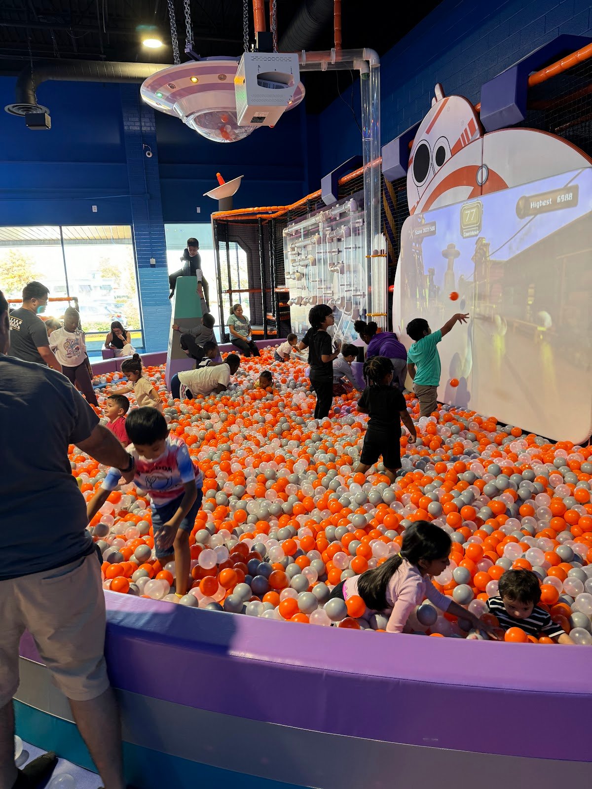 Wow, this place is bonkers, in a good way! It’s new and clean and seems very safe. Everything is padded and fun and works well. It’s packed though on the weekends so be prepared, and wear grippy socks, cause it can be slippery Even adults, cause you might want to chase your little about.