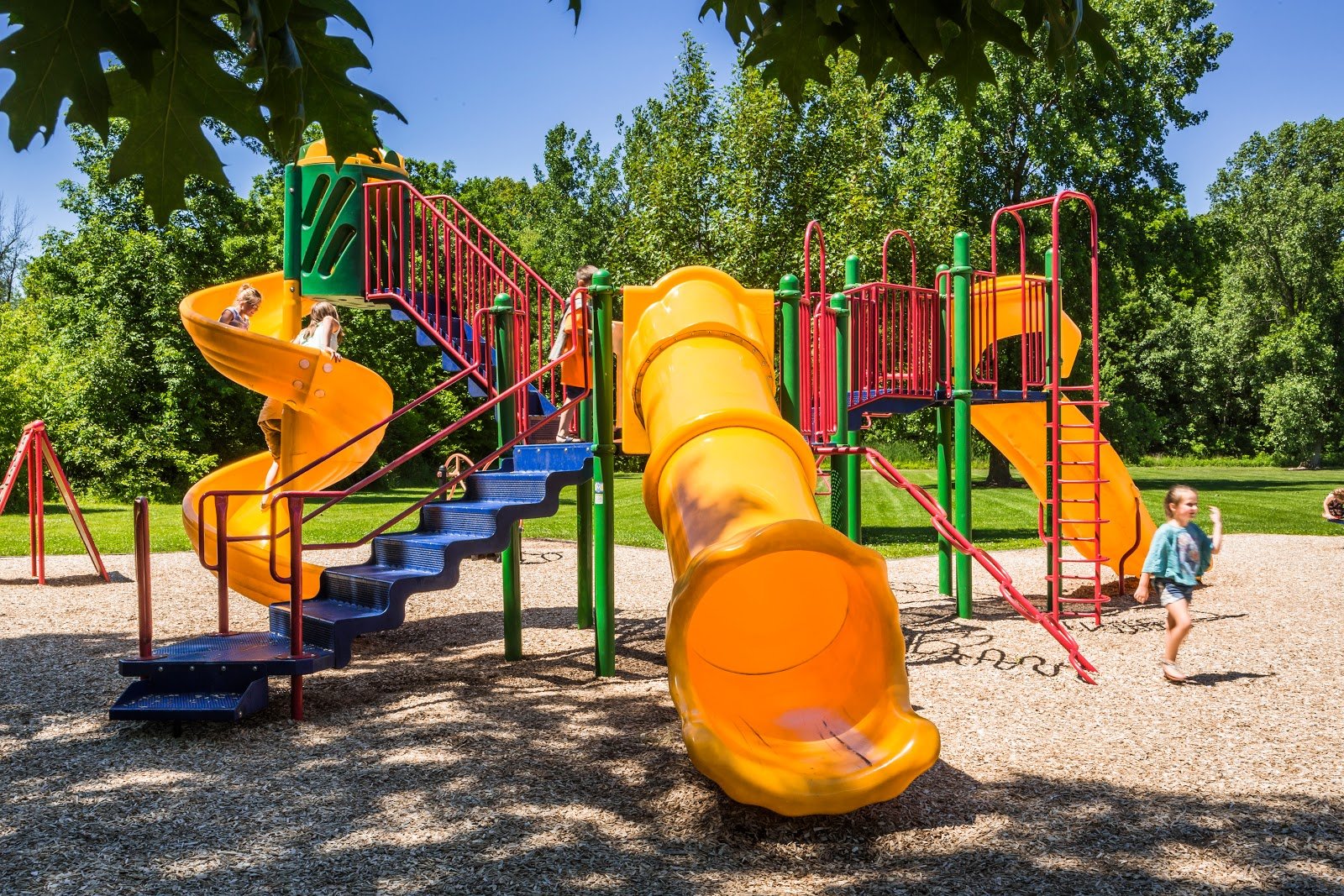 I love the playground! There are playground sets for all ages, literally (there are three different playgrounds).. there is a small playground for toddlers, a medium playground for elementary age/school children, & a large playground set with big amazing slides & steps/ladders for bigger children! There are swings on both sides of the playground to cater to kids & there’s a swing for parents who want to swing with their little ones!