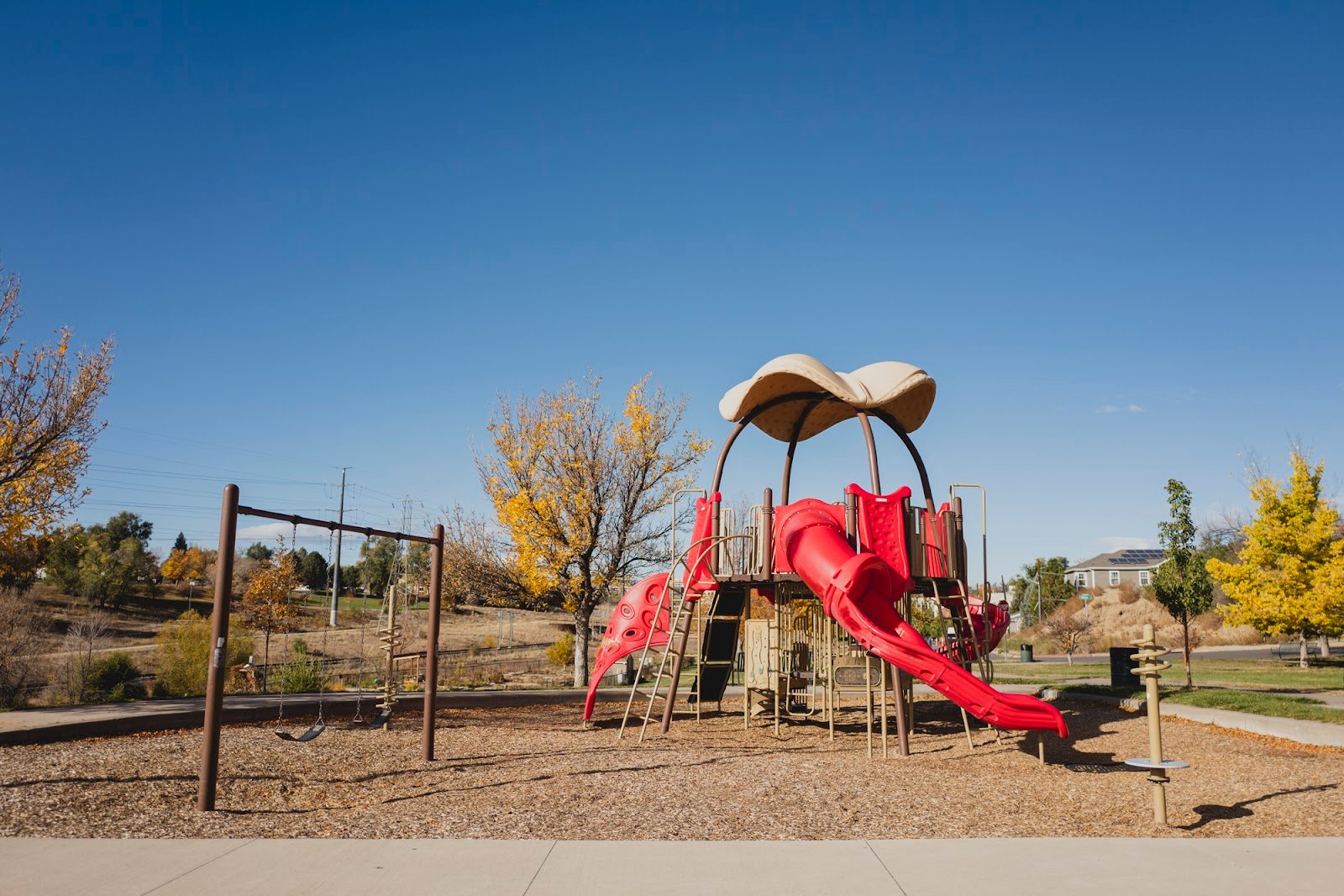 #FASTEST SLIDE IN THE WEST DURAGLIDE 2000. This Canadian wonder is legitimately the fastest twisty slide I’ve ever been on. HOLD ON TO YOUR HATS LADIES AND GENTLEMEN. Very fun! We love sitting on the bench to have a snack and watch the trains go by. Big neighborhood garden nearby is beautiful. Lots of things to climb on. Not much shade from the late morning sun, so it can get quite hot here in the summer, though the large play structure itself provides a bit of a respite.