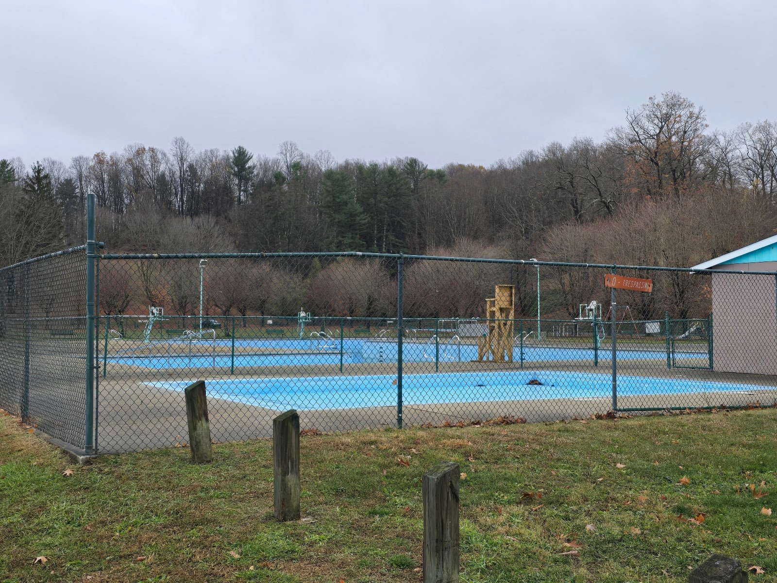 It’s a really neat park! There is a swimming pool and kiddie pool that I’m guessing are open in the summer only. A waterslide that looked to be in good repair – probably summertime only?