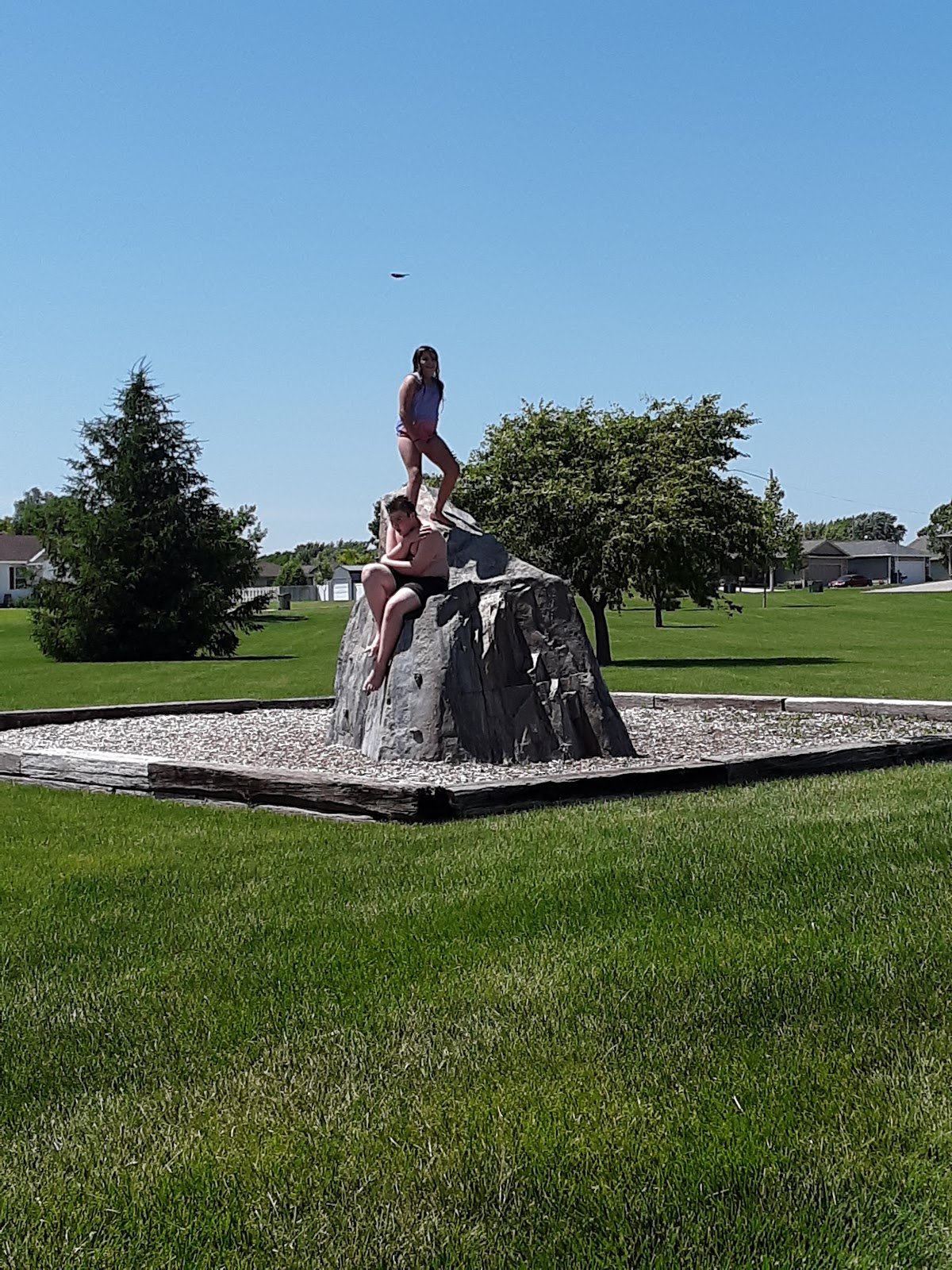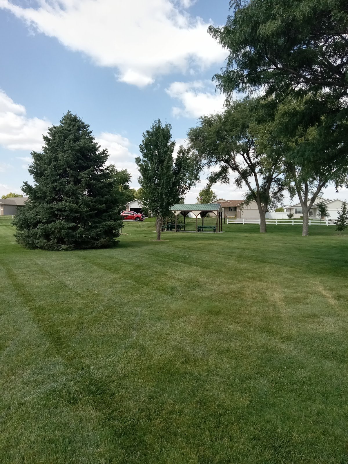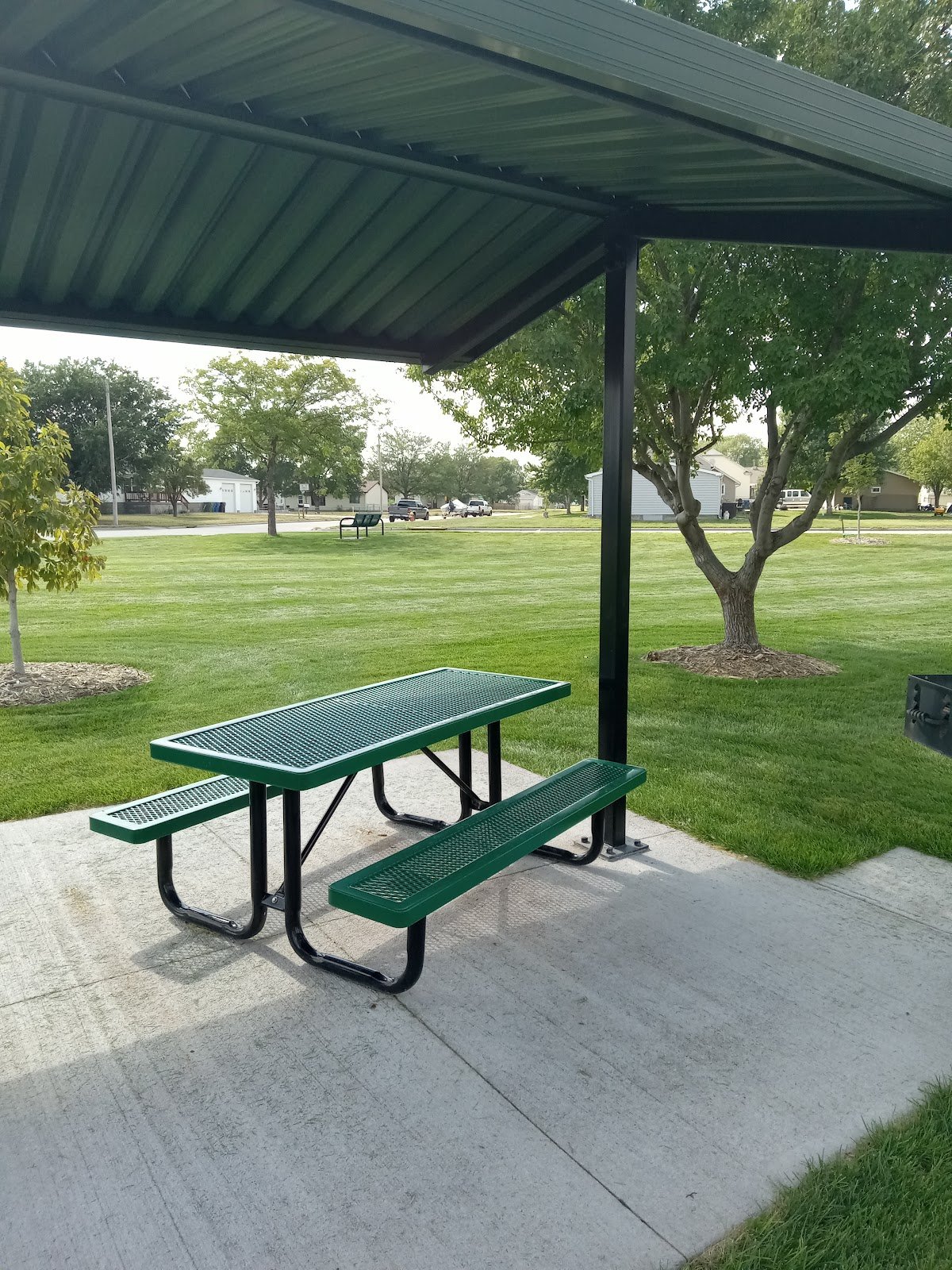 Nice large city park that is great for kids. The park is fairly large and has lots of room. It has lots of playground equipment and a splash pad. Also there are flushable bathrooms, a big basketball court. There are a few grills and picnic tables on the grounds too.