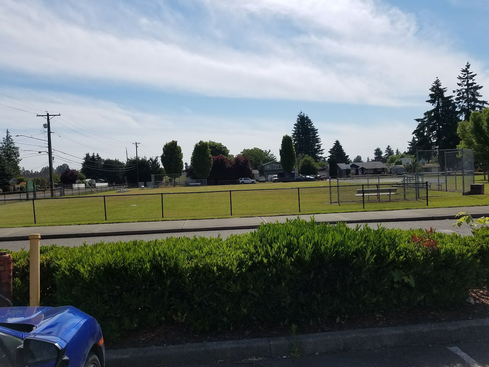 A cute little park with a small playground, 2 baseball diamonds, and a basketball court. Tons more playground equipment at the elementary school next door, too.