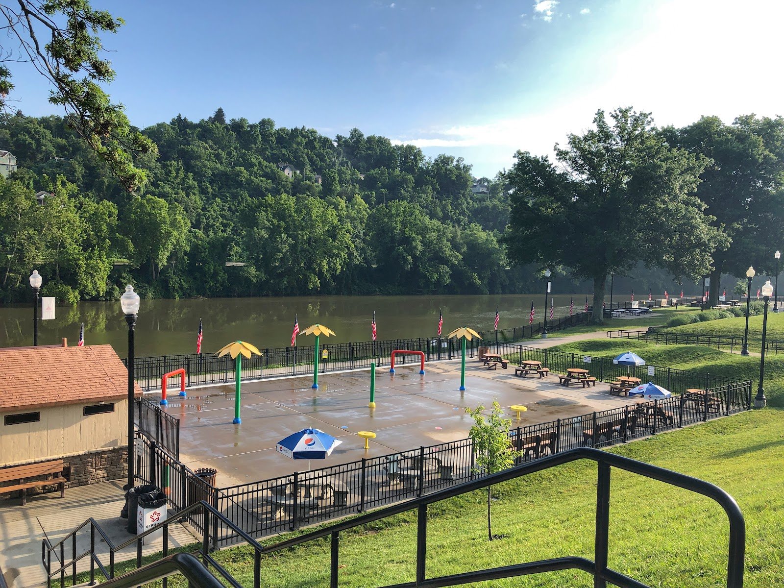 Beautiful park. Come take a walk along the river. I’ve visited the park 3 times this past week, and it’s peaceful and clean. There is a playground for the kids. There are many places to picnic.