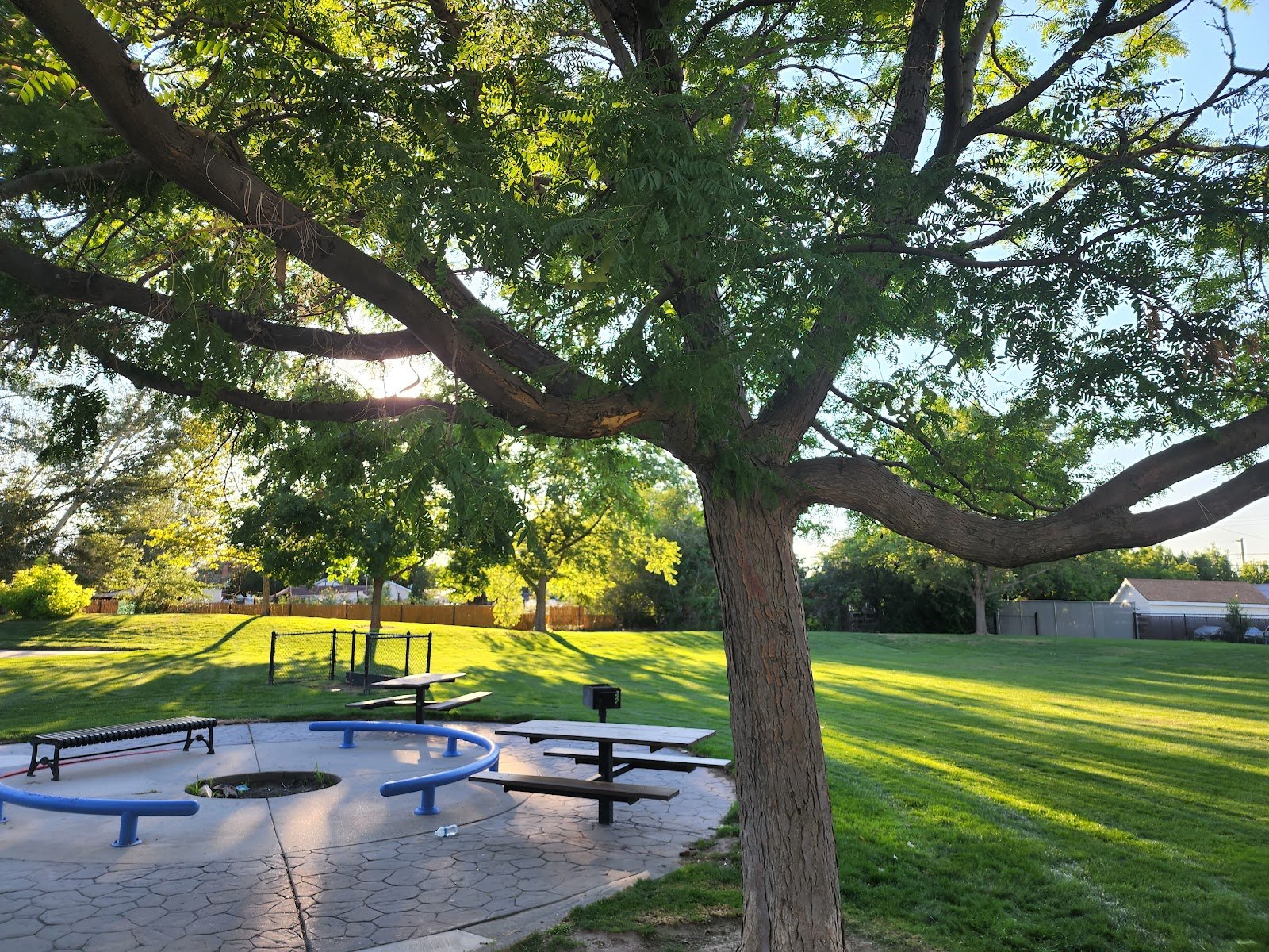 The playground is designed to be fun for everyone. It includes ramps and fun reachable things to play with for those in a wheelchair, and it also includes a lot of fun climbing equipment for older and younger children. The park also has a horseshoe pit(bring your own horseshoes), a community fire pit area, a green space area for soccer or ultimate frizbee, and a basketball hoop (bring your own ball). It does not include a bathroom or working drinking fountain, so come prepared. It also has a nice paved walking path around the playground.