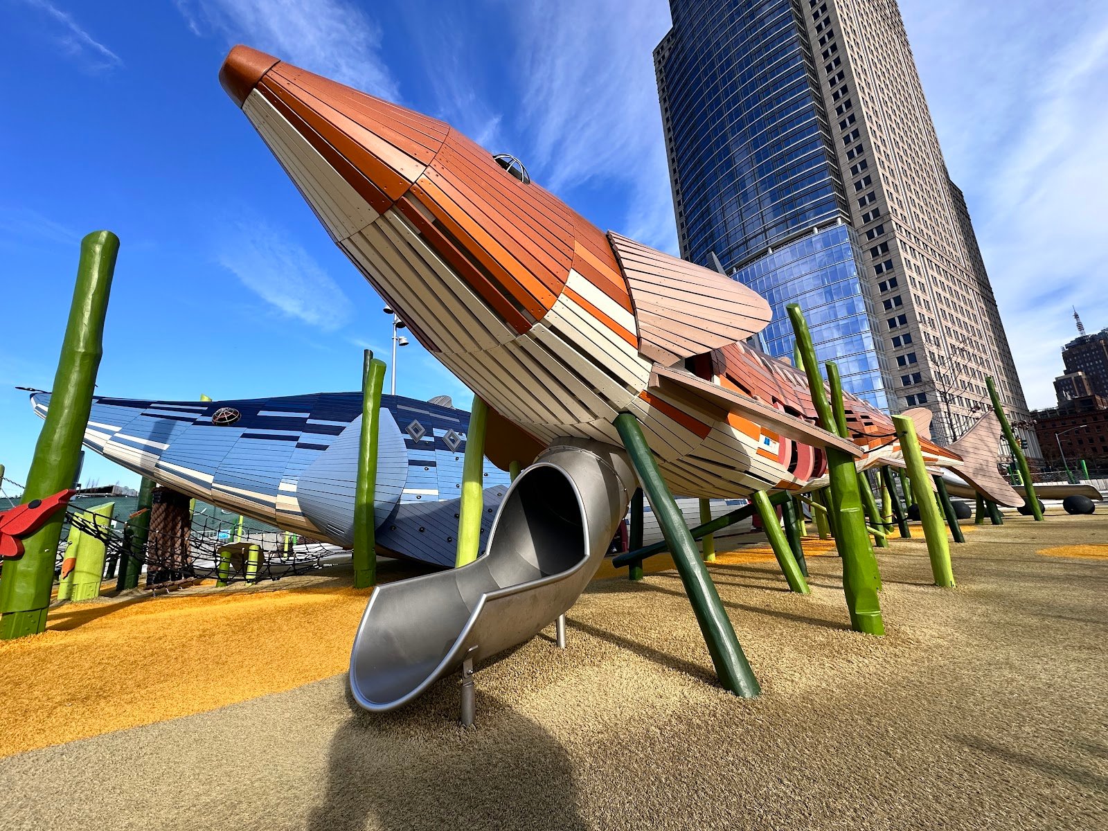 Pier 26 is one of the best playgrounds in the city. The science playground is a great concept and provides shade inside the structures. Unfortunately not much shade outside, which is definitely downside during hot sunny days.