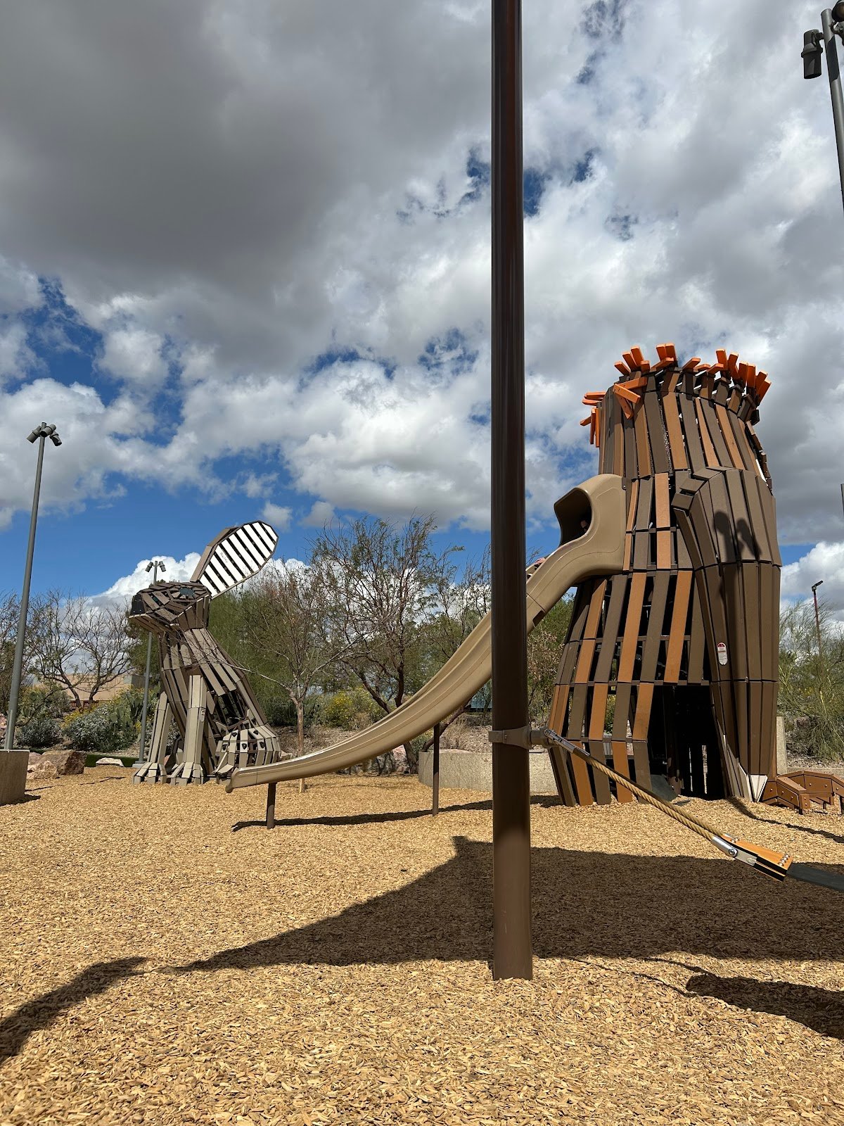 Very unique park! My grade school kids loved all the climbing features and ropes course. I love that it is geared toward older kids. I only wish there was a place where my toddler could play near the main playground that was not sand.