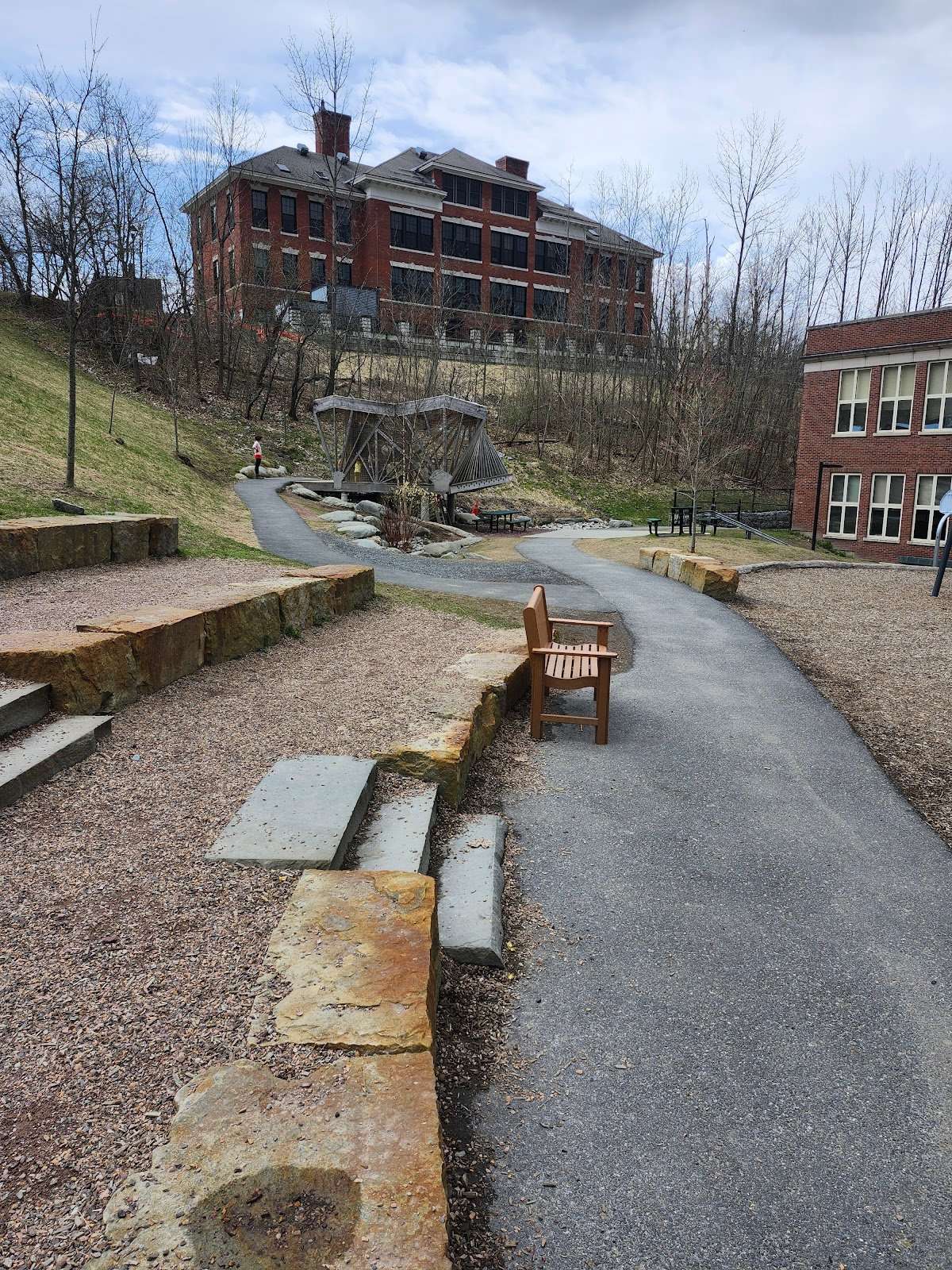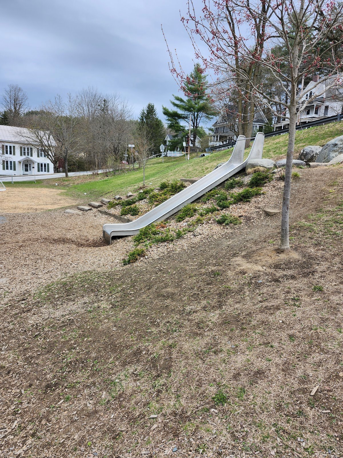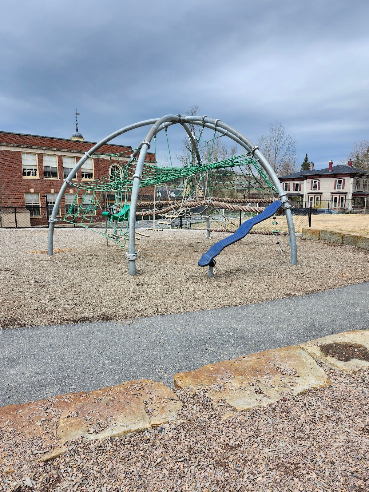 Great playground behind a school. Rated for kids 5-12 years. Younger kids can enjoy the tree house and slide. Safe design for all.