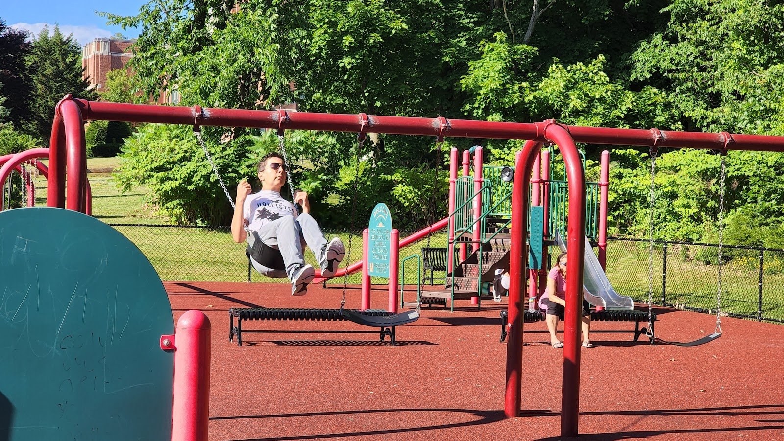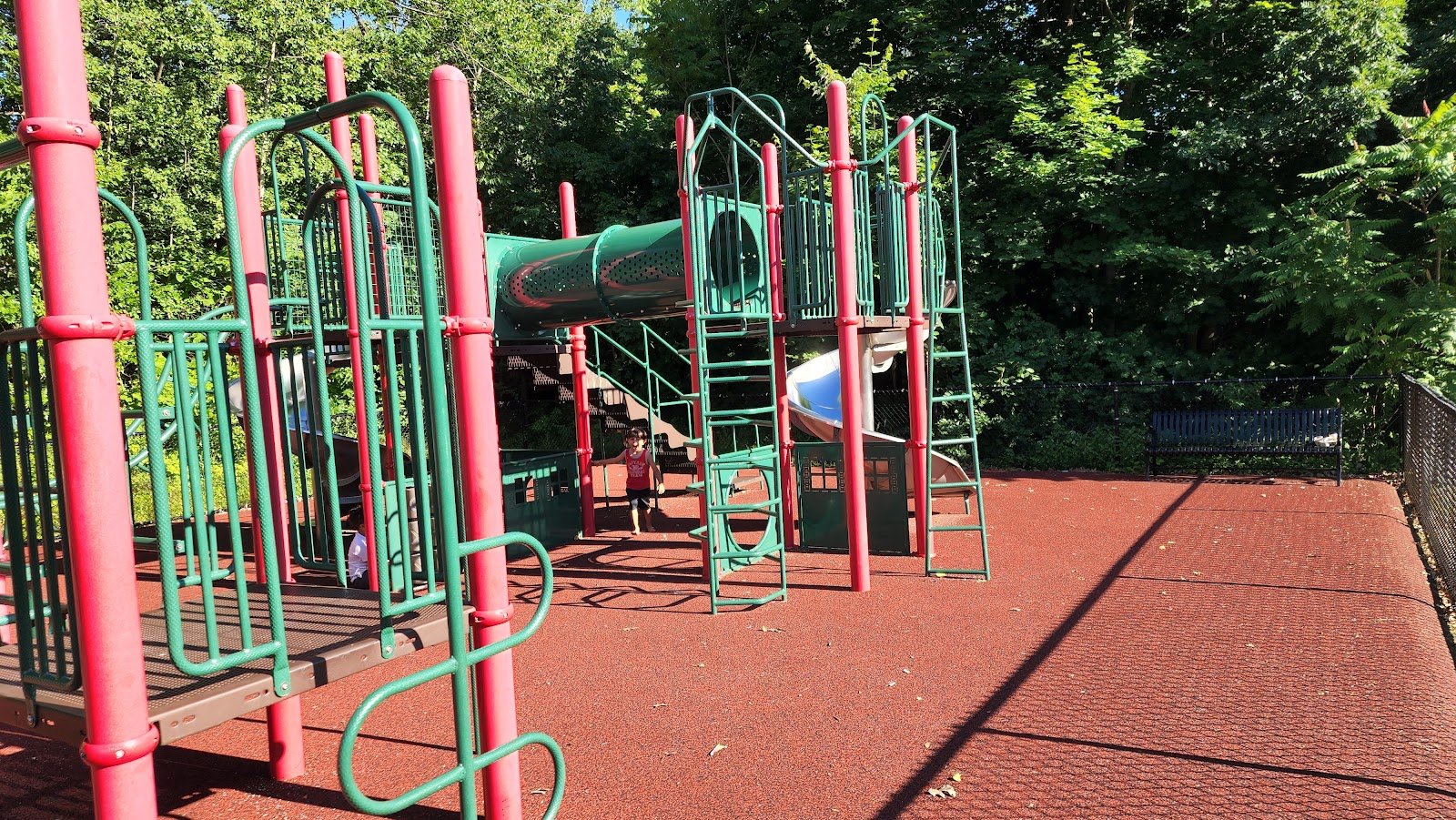 My new to go park. Love that is gated but I do wish there was some sort of shade area.