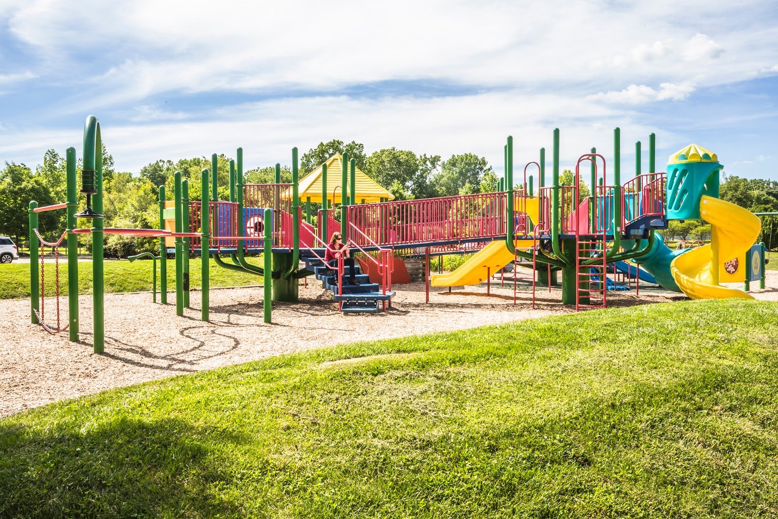 A nice park for active families. Upon first arrival, the playground looks small compared to others, but as you walk down the trail, you’ll find more play structures. The playground by the parking lot has wheel chair accessible activities. The trail continues as a loop and goes right by the white river.