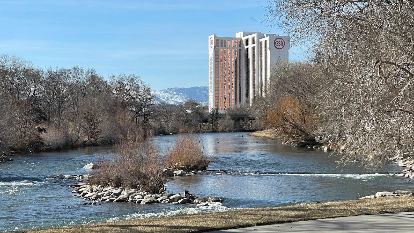 An oasis with a nice view and the sounds of the white noise of the Truckee River current.