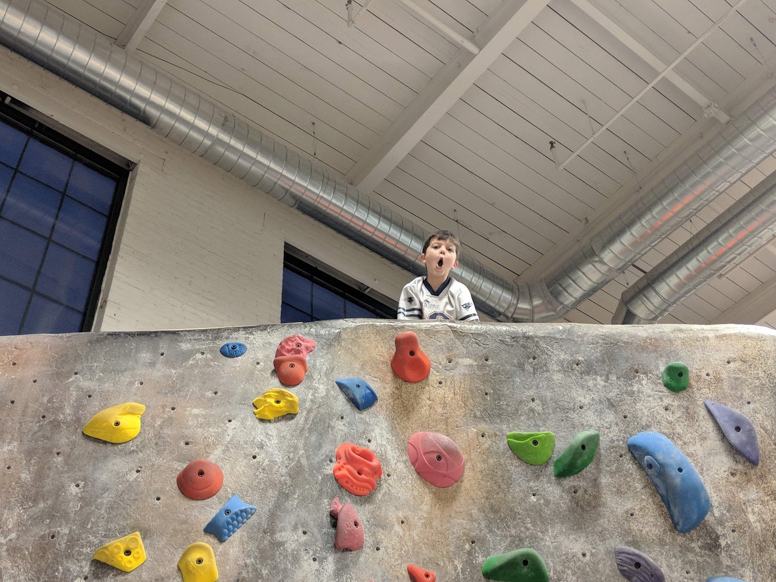 With 45 ft walls, makes for a real challenge. Challenges your stamina, your endurance and yourself. Great atmosphere and great Staffing, for people who like to climb. Two downsides. First one, GPS rarely sucks at getting you here. GPS will tell you to go left, instead of staying on the road that swoops around to the right. And put you in a parking lot that does not attach to the building. Second one, it shares a parking lot with Whalers Brewery. If Whalers Brewery is open it’s very hard to find a parking spot. But it truly is a great place that’s why I give it 5 stars. Two floors, with Boulder and climbing on both floors.