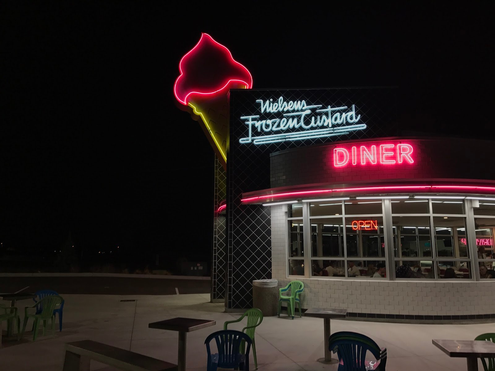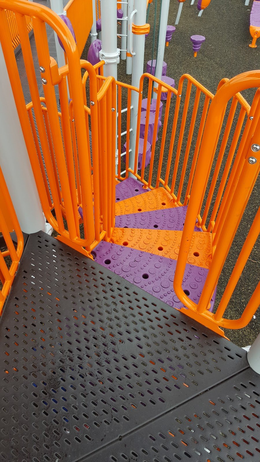 What a nice, well kept Park. No restroom. The playground equipment is wonderful and there are picnic tables, areas to walk, trash cans. And benches for grown-ups who want to watch the many children playing. Multi level play area, including opportunities for special needs children and wheelchairs. The park area is fenced away from the road, making it safe. Added bonus, there is a Nielsenā€˜s frozen custard adjoining to the park!